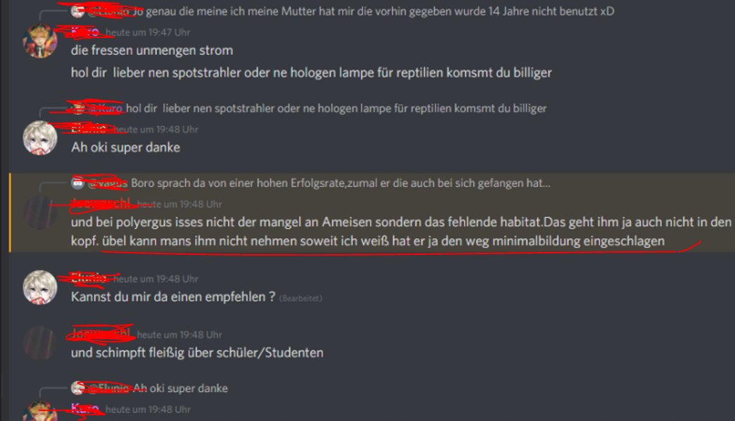 bei dem Server handelt es sich um den größten deutschsprachigen Ameisenserver auf Discord ,mit über 1400 Mitgliedern .Umso bedenklicher finde ich es, was in diesem Server öffentlich für ein "nonsense" steht.
