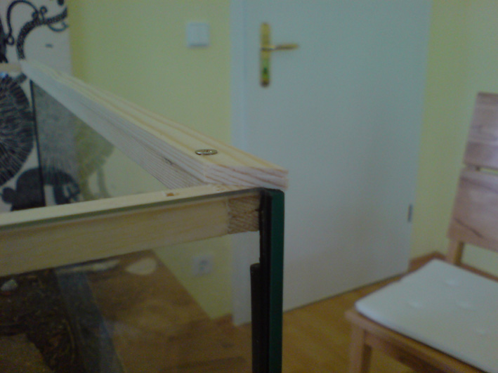 Ich habe erst einen Holzrahmen an der Ăffnung in mein Glasbecken installiert bzw. mit Silikon eingeklebt und diesen dann mit Holzleisten ( in 45° GĂ€rungswinkel zueinander ) abgeschlossen. Dort habe ich dann Dichtband aus Schaumstoff aufgeklebt ( selbstklebend ).