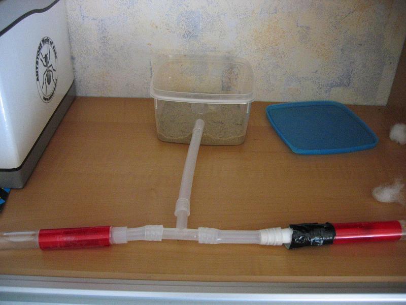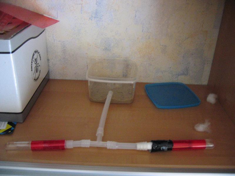 Ich hab also die Box genommen und nen bisschen kleineres Loch gebohrt als der Schlauch ist, somit man den Schlauch, richtig hineinzwengen muss. Somit ist die Ausbruchchance gering. Dann hab ich die Box mit einer 1-2 cm dicken Paraffinölschicht beschmiert (oben am Rand) somit der Ausbruchschutz gewĂ€hrt ist. Der Deckel ist zum zusĂ€tzlichen Schutz, falls ich in der Schule bin. Ne kleine Schale wird zur FĂŒtterung verwendet. Der Sand ist dafĂŒr da, das es ein wenig Gewicht besitzt und das der Schlauch nicht ins leere schaut. D.h. er liegt am Sand auf. Das zweite RG ist erstens dafĂŒr da, da ich damals im RG gefĂŒttert hab und sich auch schon bei einem mal Schimmel gebildet hat, deshalb hab ich einmal zur Vorsorge falls es ihnen ungemĂŒtlich wird ein zweites RG angeboten. Desweiteren kann ich ja auch immer etwas anschließen falls ich sie umziehen lassen will.