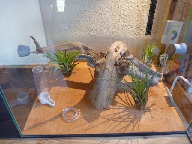 sieht absolut gelungen und fast schon "designerträchtig" aus. Zwar wenig, dafür aber gezielte Einrichtung, "minimalistisch" genug, um die Tiere beobachten zu können, "natürlich" genug für einen angenehmen Einblick.