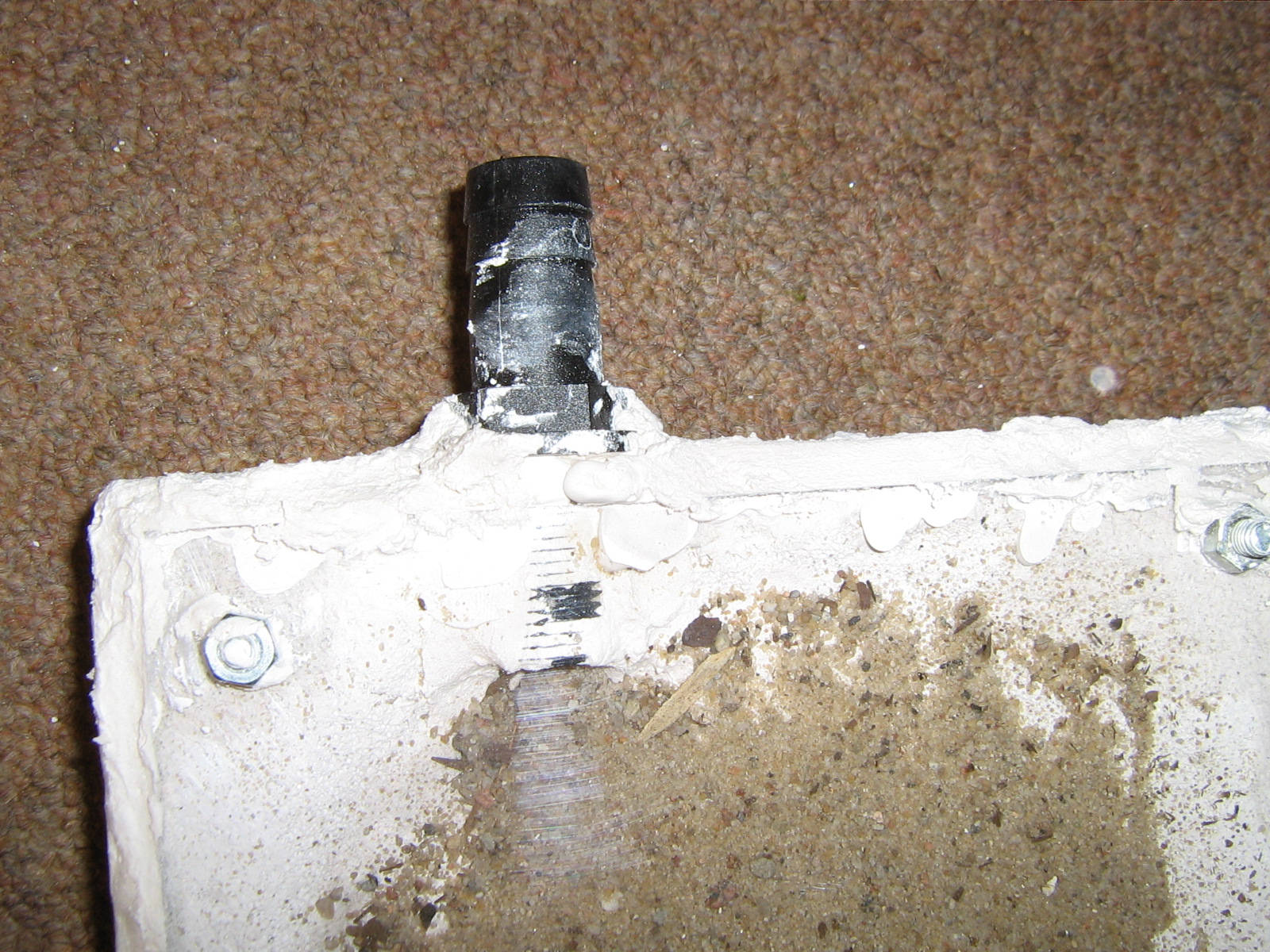 Bild 4: mit Gips eingegossene Schlauchverbindung im fertigen Nest