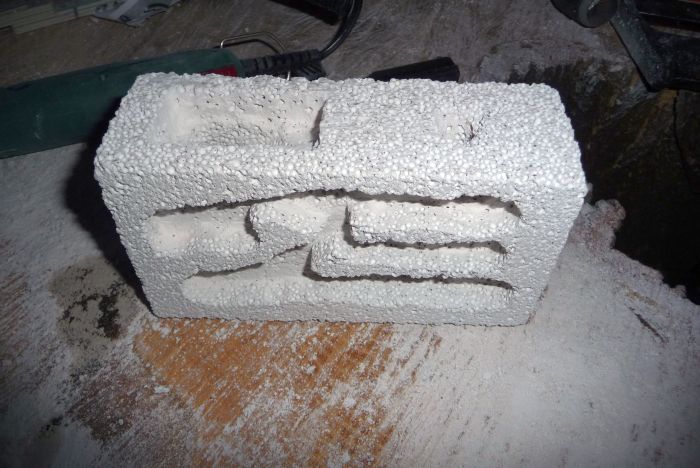 Nachdem die Größe des Nestes entschieden war, sägte ich mit einem Fuchsschwanz den entsprechenden Block aus dem Porenbeton.