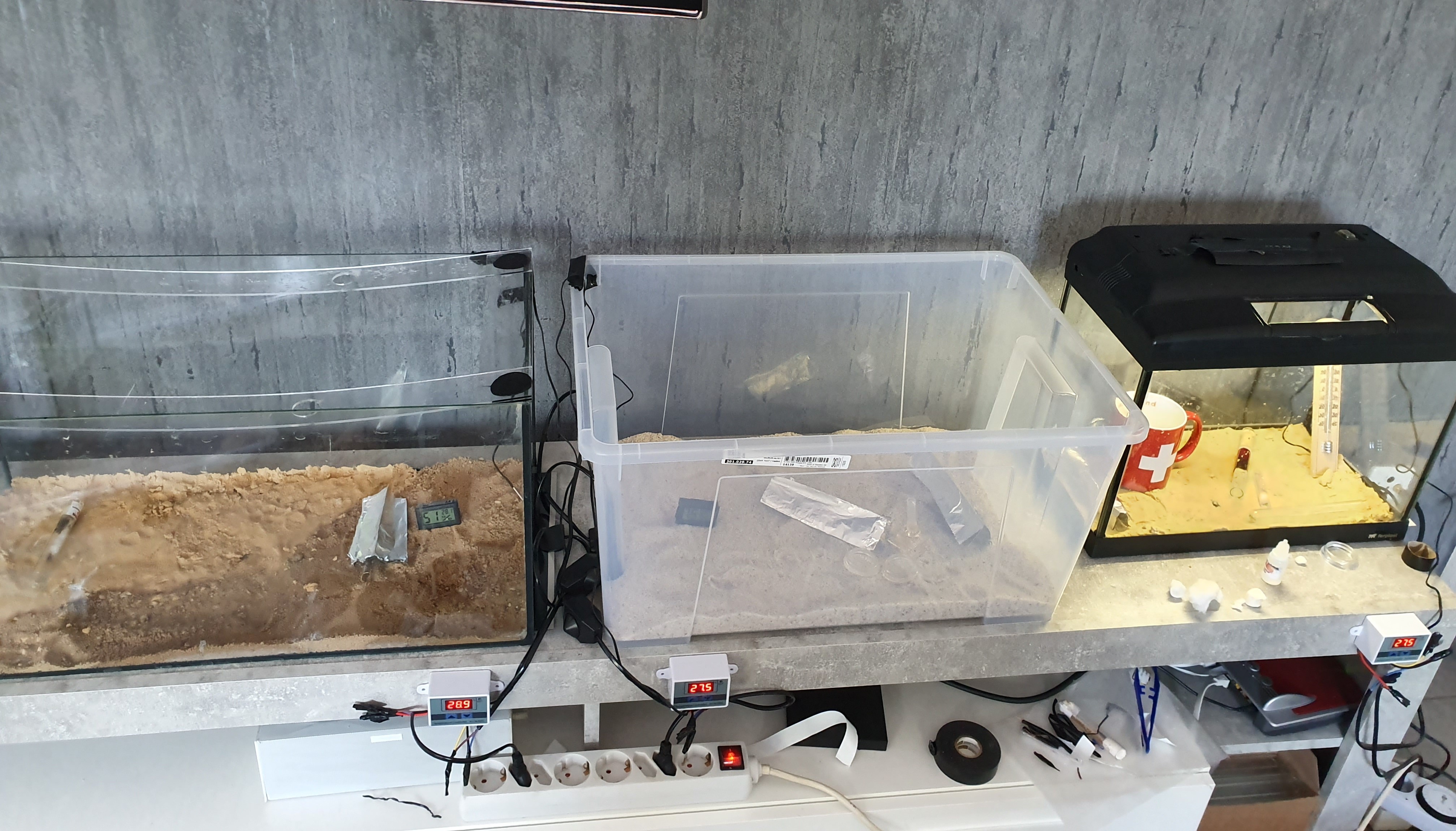 Meine Idee ist es beim Gießen des Nestblocks aus Gips oder aus Beton einen Silikonschlauch gewunden einzubetten, welcher das Nestmaterial erwärmt bzw. (und deshalb dieser Ansatz) Kühlt (da ich befürchte, dass meine Freundin sonst erst mir und dann den Ameisen den Kopf abreisst, wenn ich das Nest in den Kühlschrank stelle).