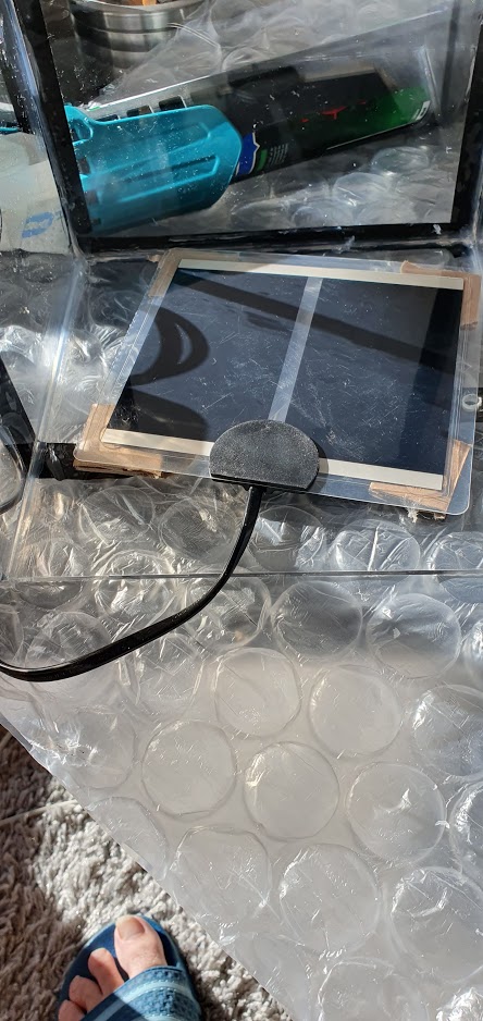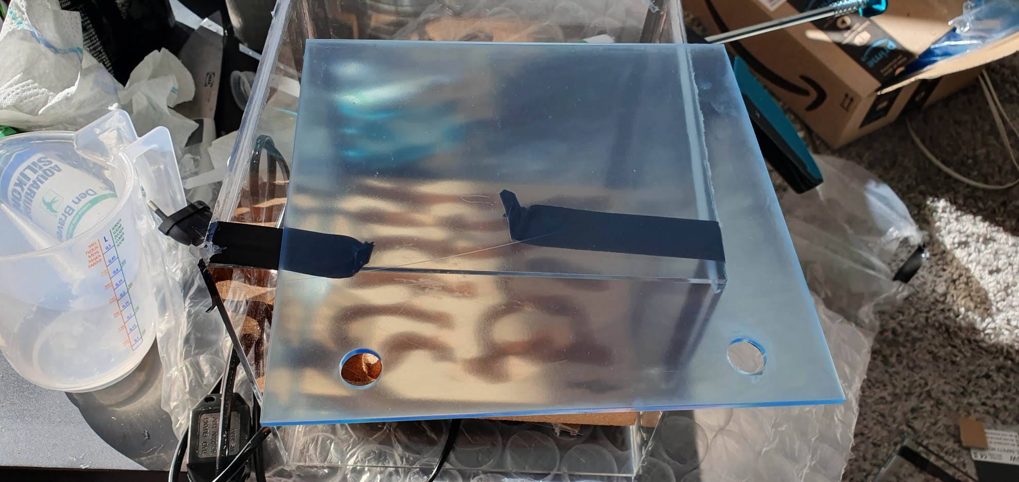 und darauf dann die 18,5x19 Platte drauf und diese mit Silikon eingeklebt und beschwert damit sie an Ort und Stelle bleibt