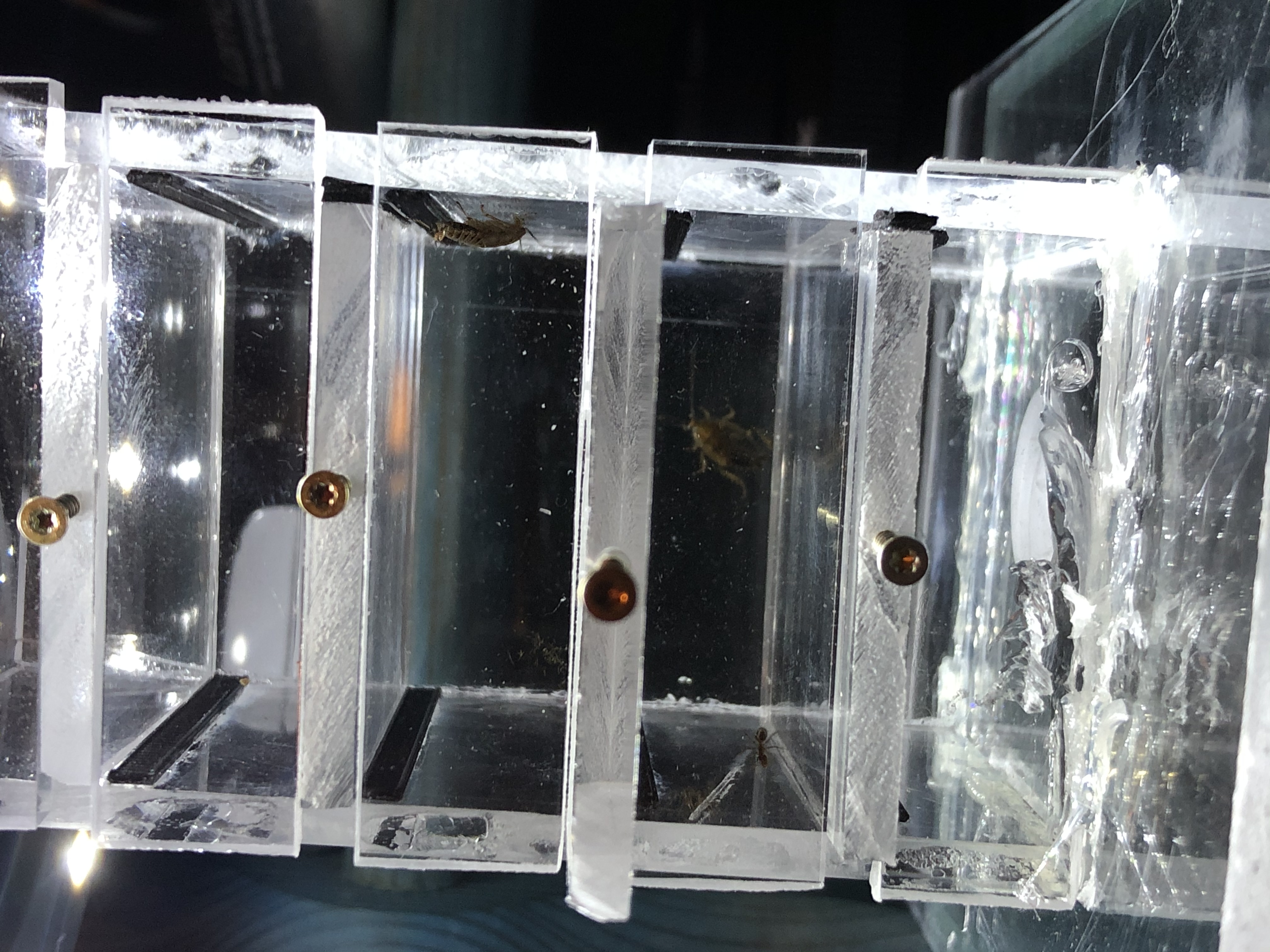 Vier Schubladen um die nach oben steigenden „Ausbrecher“ zurĂŒckzuhalten aber von oben auch nach-fĂŒttern zu können. Schaben zum Beispiel gehen schnell nach untern und man kann die Schubladen gut hinter ihnen schließen. Mitunter ist ein bisschen Geduld gefragt, aber die ist denke ich hier Grundvorraussetzung fĂŒr unser aller Hobby.