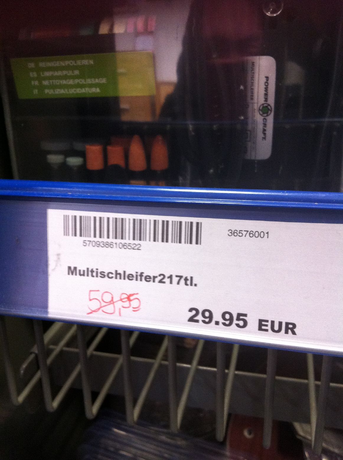 Heute im Dänischen Bettenlager habe ich zufällig auch einen Multischleifer entdeckt. Vielleicht gibt es den bei euch auch zu haben. War viel Zubehör dabei und schien mir ein recht attraktives Angebot zu sein.