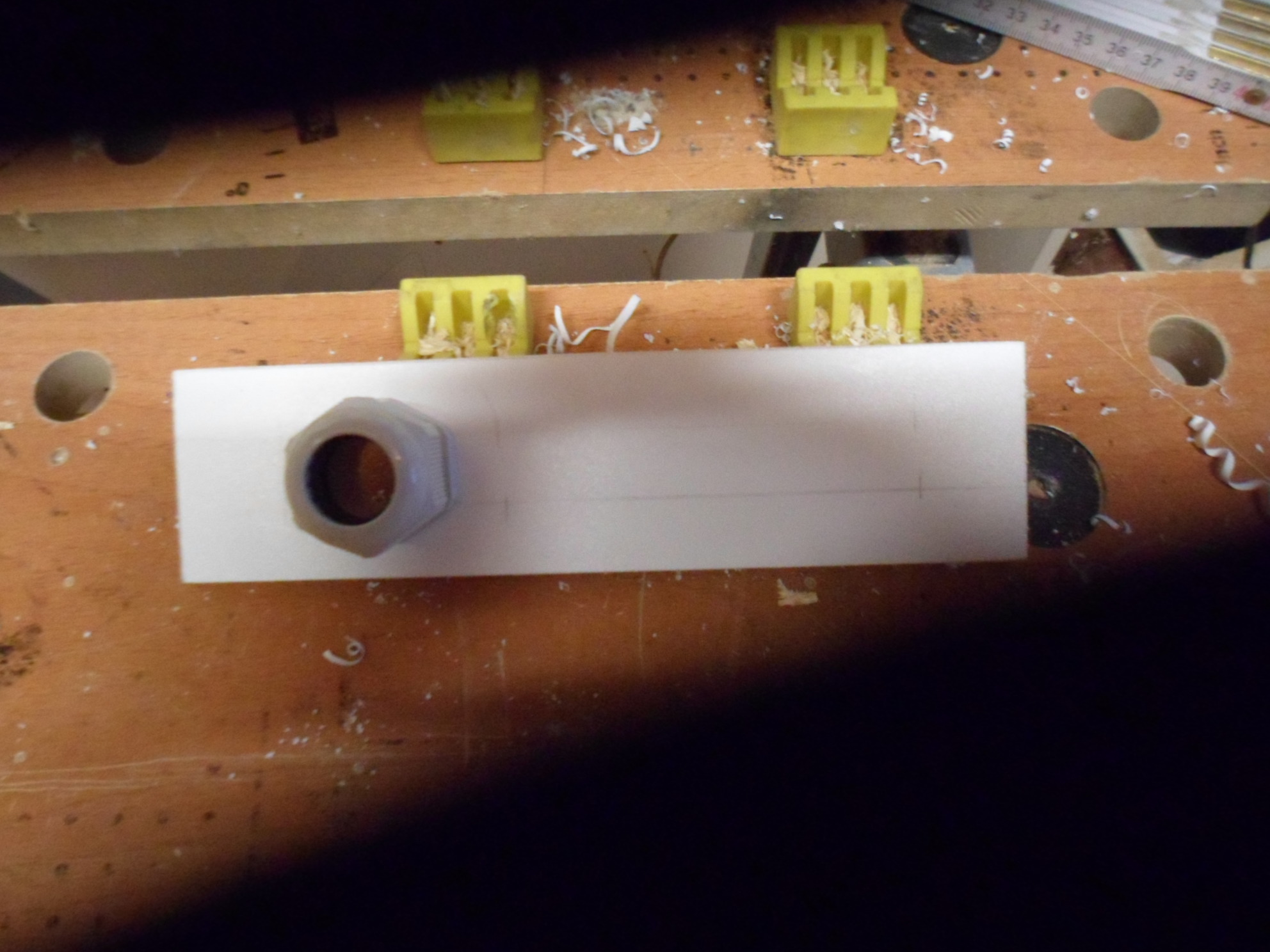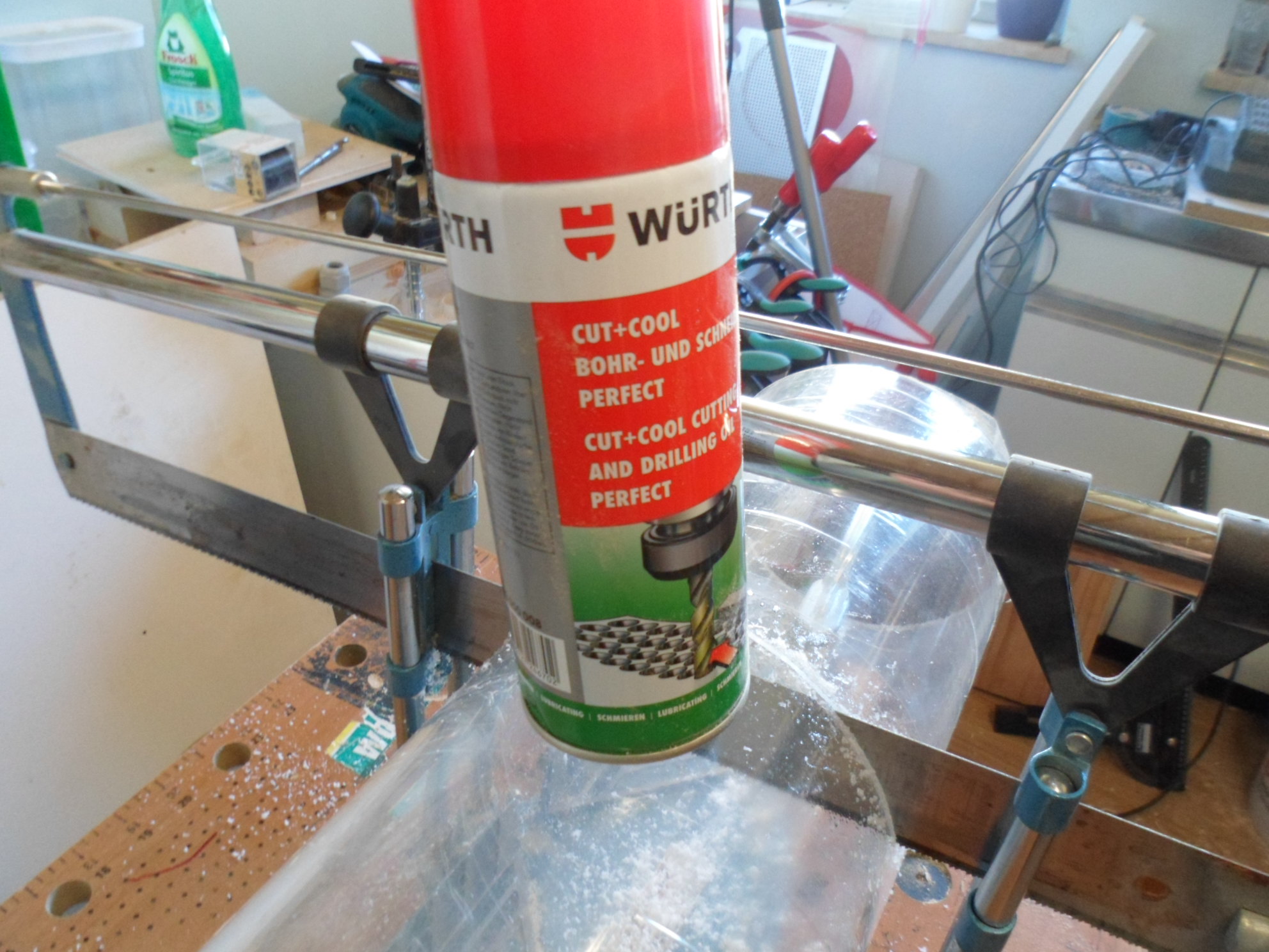 Die Klemmverschraubung wurde auf einer Kunststoffplatte befestigt und zusätzlich mit Silicon verklebt damit eine 100% sicherer Zugang zur Arena möglich ist. Leider hab ich etwas unsauber gearbeitet mit dem Plexiglas und sofort die Quittung erhalten :andiewand: