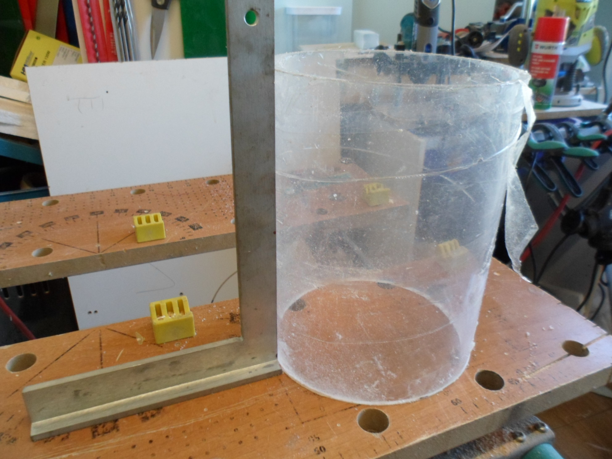 Da steht Plexiglas in allen Größen und Formen rum, klar, milchig, rund eckig und farbig. Da steht auch meine Anlage für Blattschneideameisen rum,Plexiglaszylinder 25x25 12 stk, als ich fertig war fand ich Blattschneider öde