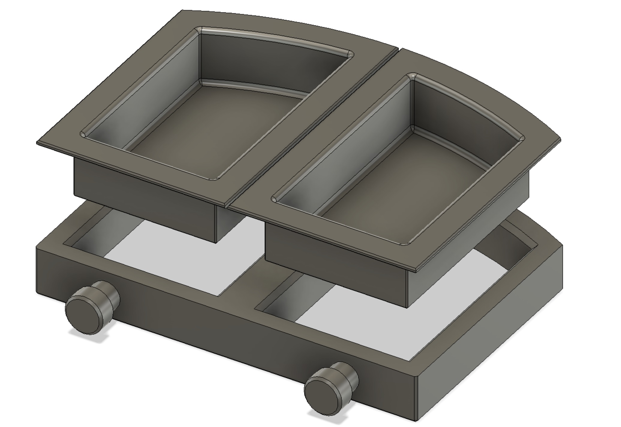 Um auch andere Futtermöglichkeiten anbieten zu können habe ich noch einen Halter konstruiert der mit Saunäpfen am Glas befestigt werden kann. Dieser hat dann zwei herausnehmbare Schalen um sie besser reinigen zu können.