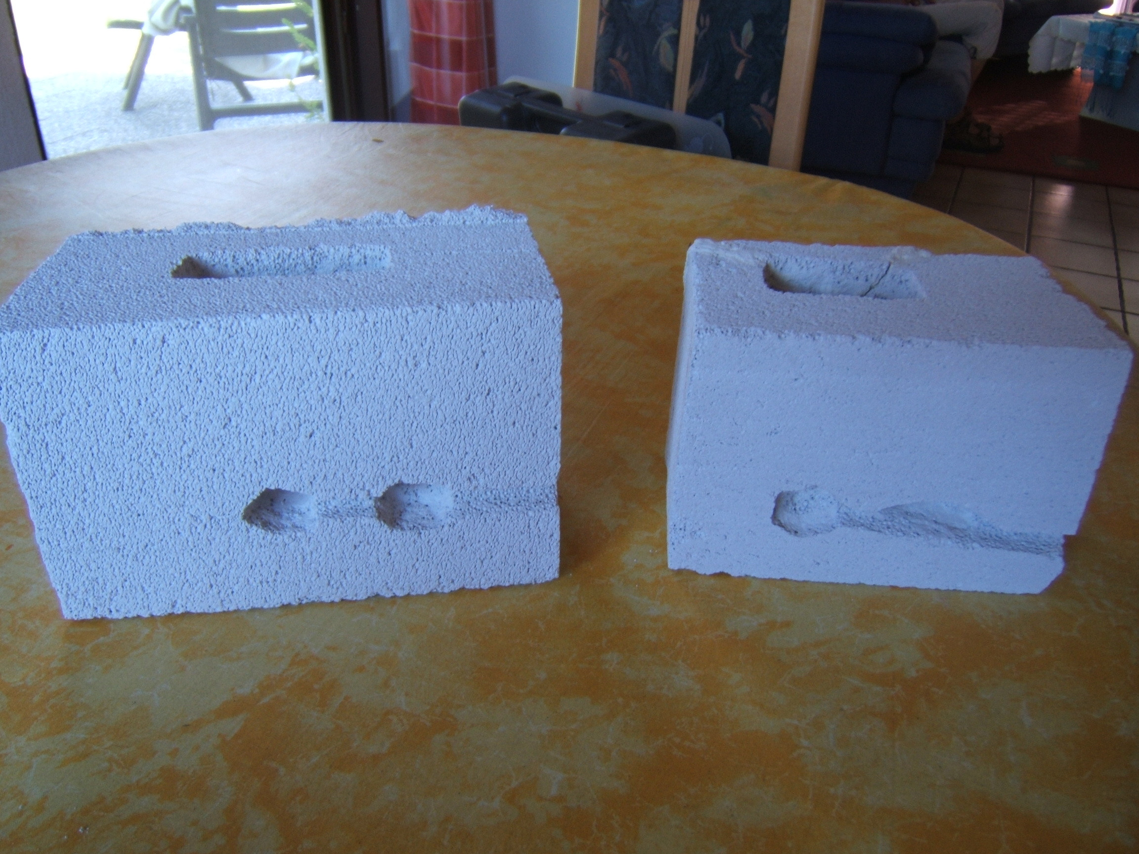 Bild 1:Beide Ytongnester nebeneinander.Links Pheidole Nest, rechts Myrmica Nest