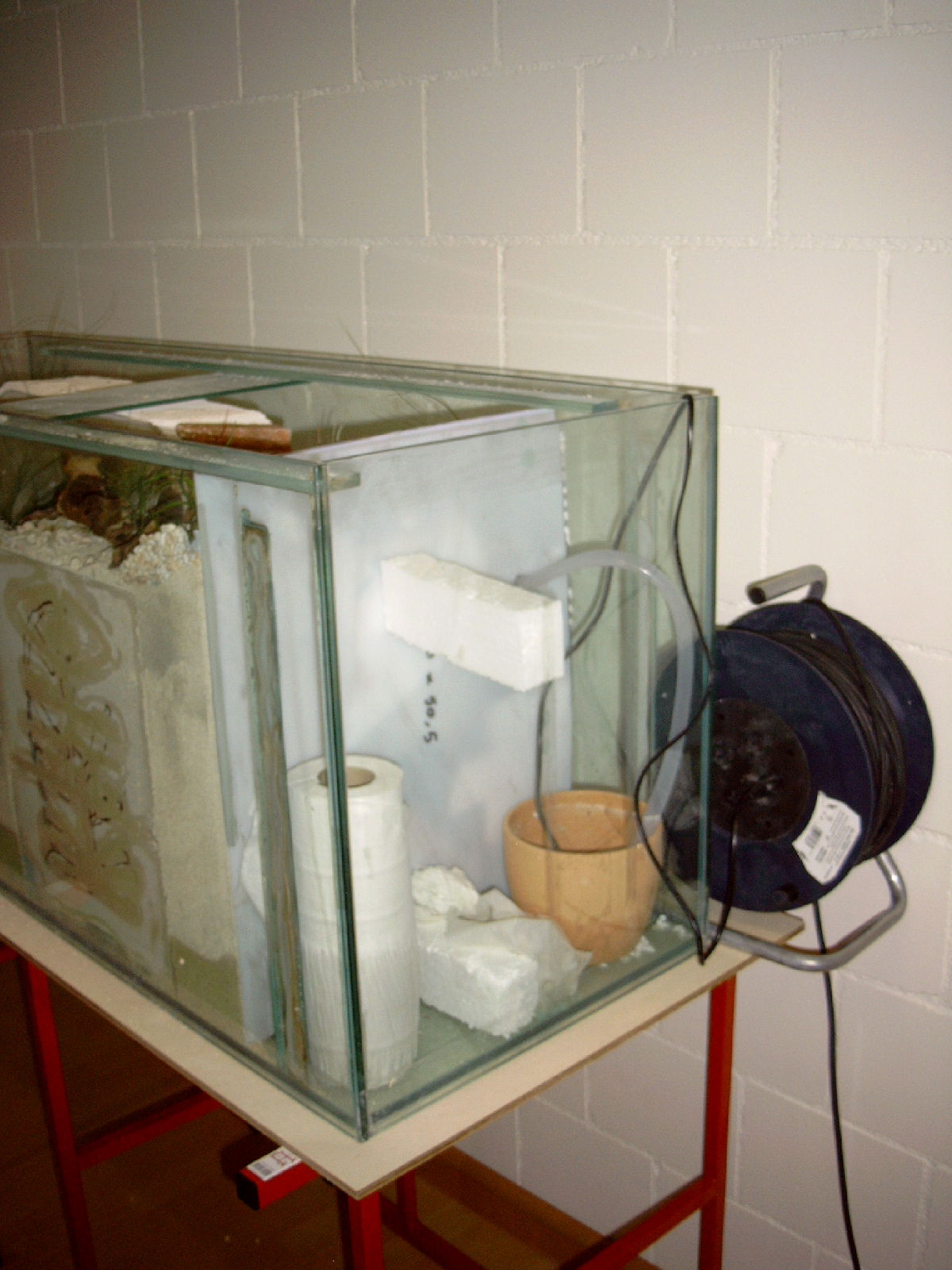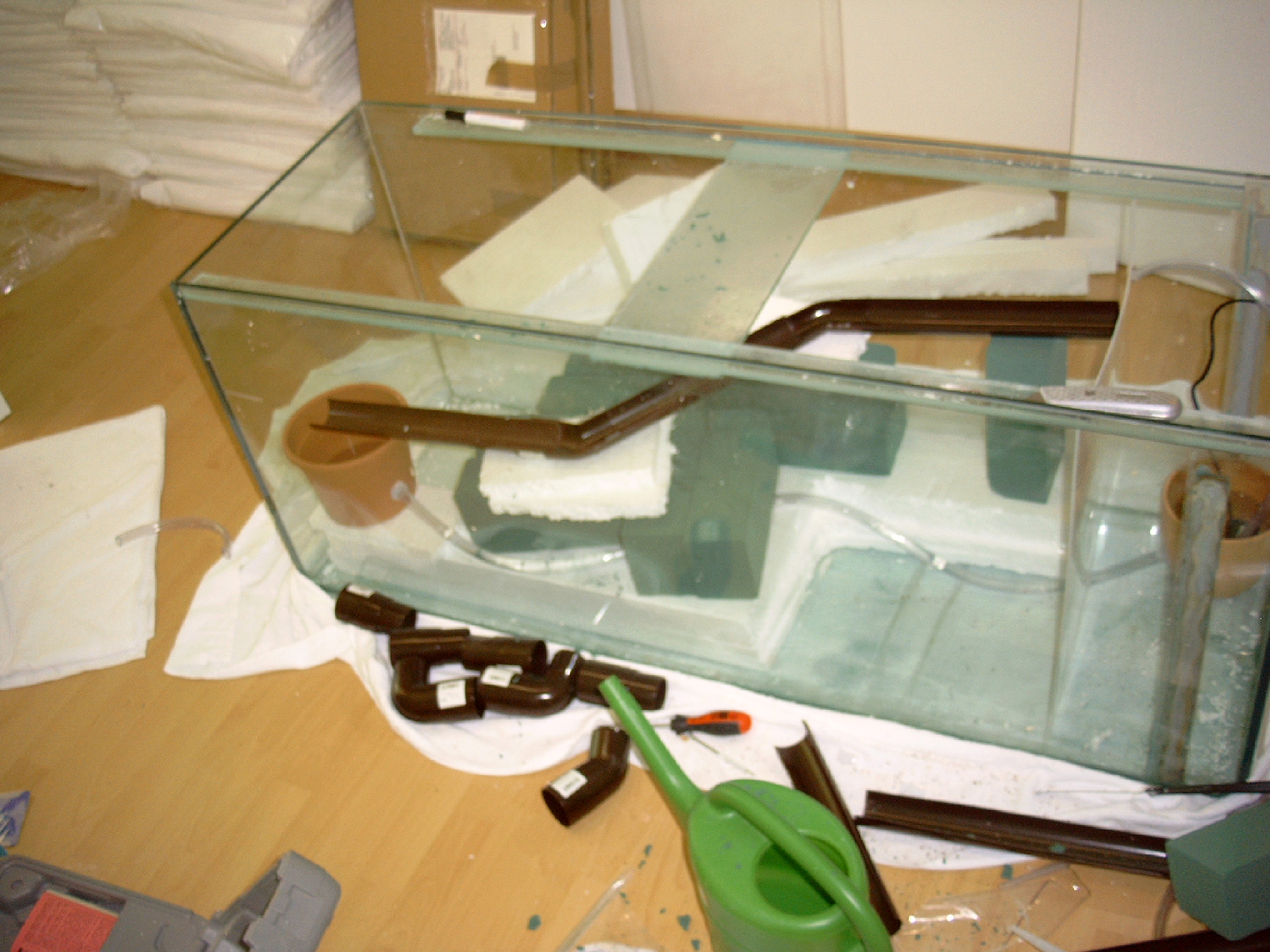 Die Gefahr ist eigentich nicht gegeben da das Wasser doch recht schnell läuft und unten im ersten Auffangbecken ein Gitter liegt durch das die Meisen nicht durchfallen können. Mehr Probleme macht mir eher die Physik zwecks Kappilareffekt mit Sand. Ich wollte den Wasserlauf mit Sand auskleiden und dann Steine reinkleben, ist aber nicht möglich wegen oben genannten Effekt. Also gösseren Kies her da passiert das nicht.