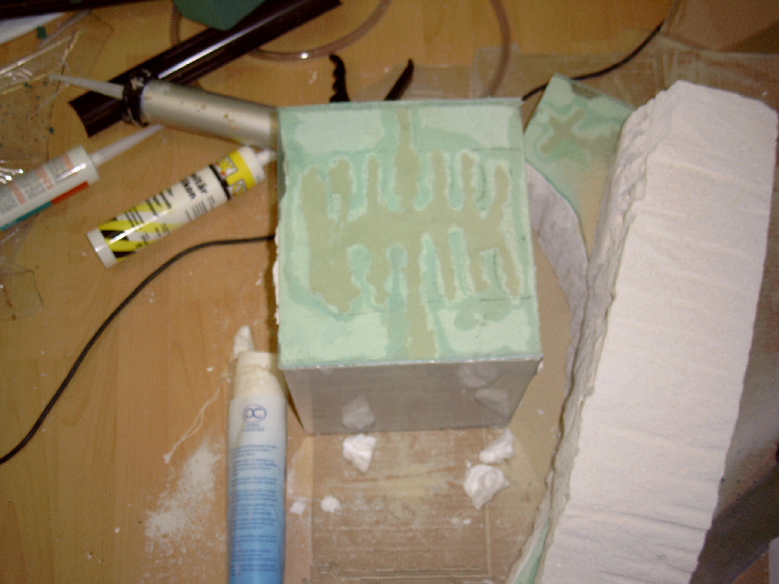 So ich hab mal weitergebaut, damit die ganze Konstruktion nicht zu schwer wird hab ich den Unterbau komplett aus Styropor und diesem Material das Blumenläden für Trockengestecke benutzen gebaut.