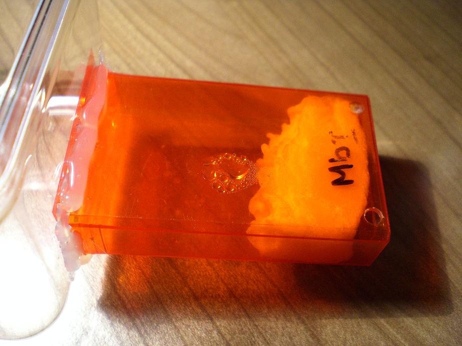 Hier mit WattestÀbchen als Beweis dass in der OberflÀche kein Wasser mehr ist, sonst wÀhre alles weggesaugt.