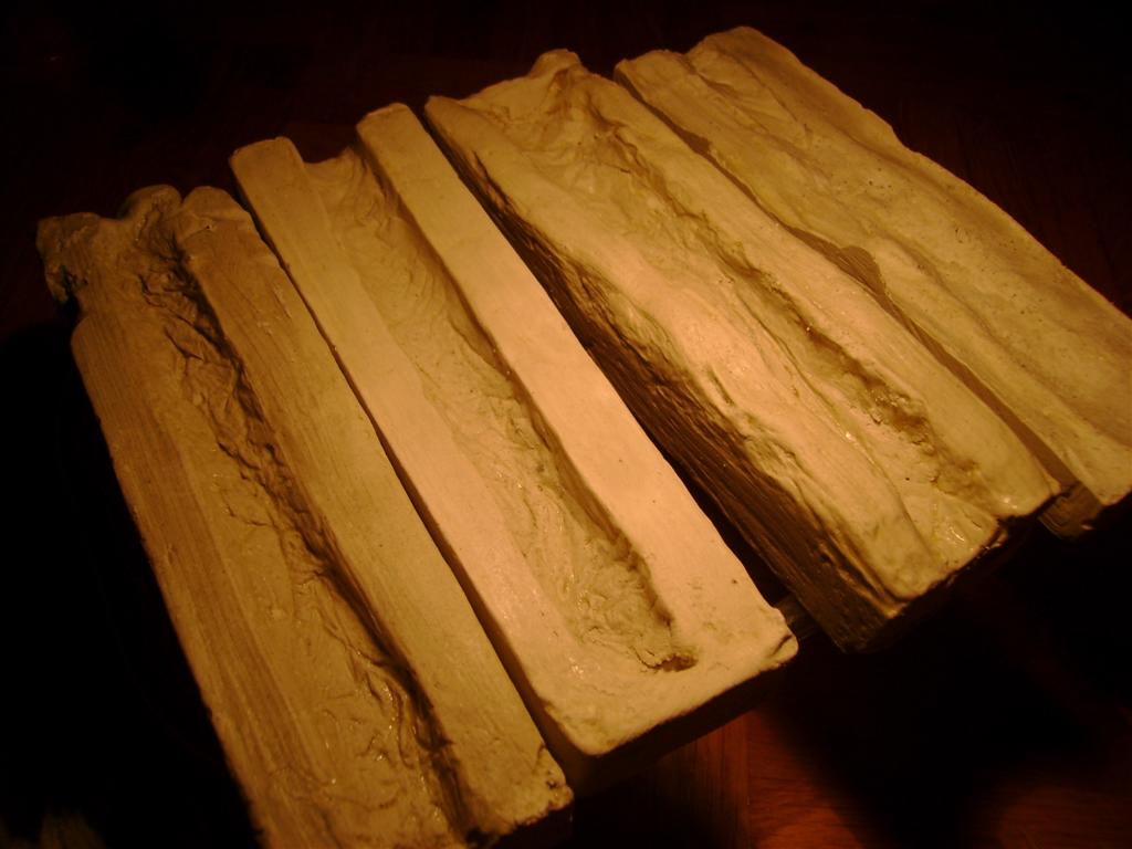 Gips scheint mir die bessere Lösung zu sein. Formen bauen und ausgieĂen macht auch SpaĂ.