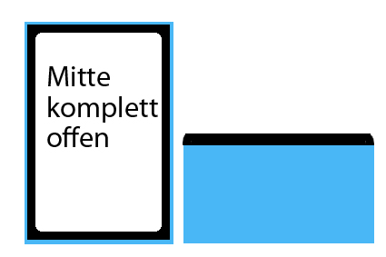 die oben komplett offen ist (beste Einsicht, Lufteinlass) und einem Rand der wie ein Viertelkreis aufgebaut ist.