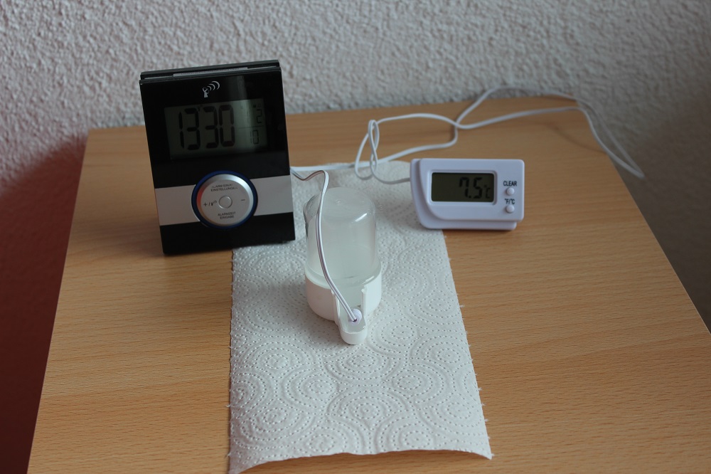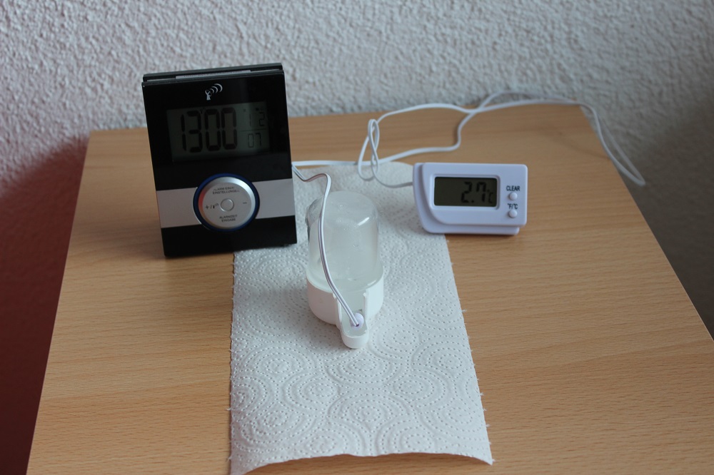 Ich habe gestern 30 ml mit einer Spritze in eine VogeltrĂ€nke gegeben und diese ĂŒber Nacht auf dem Balkon herunter gekĂŒhlt.