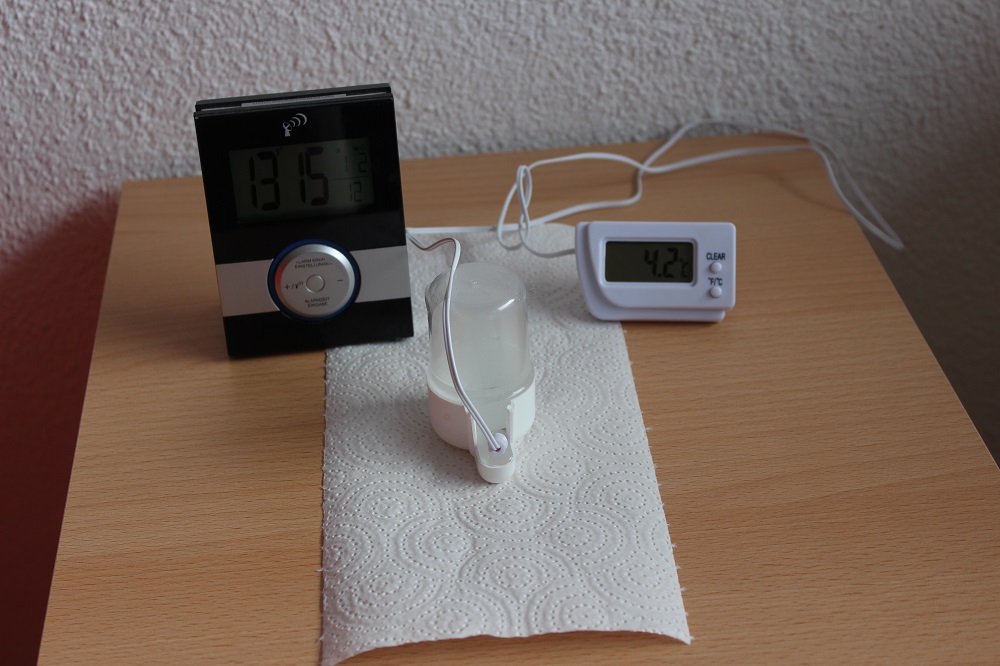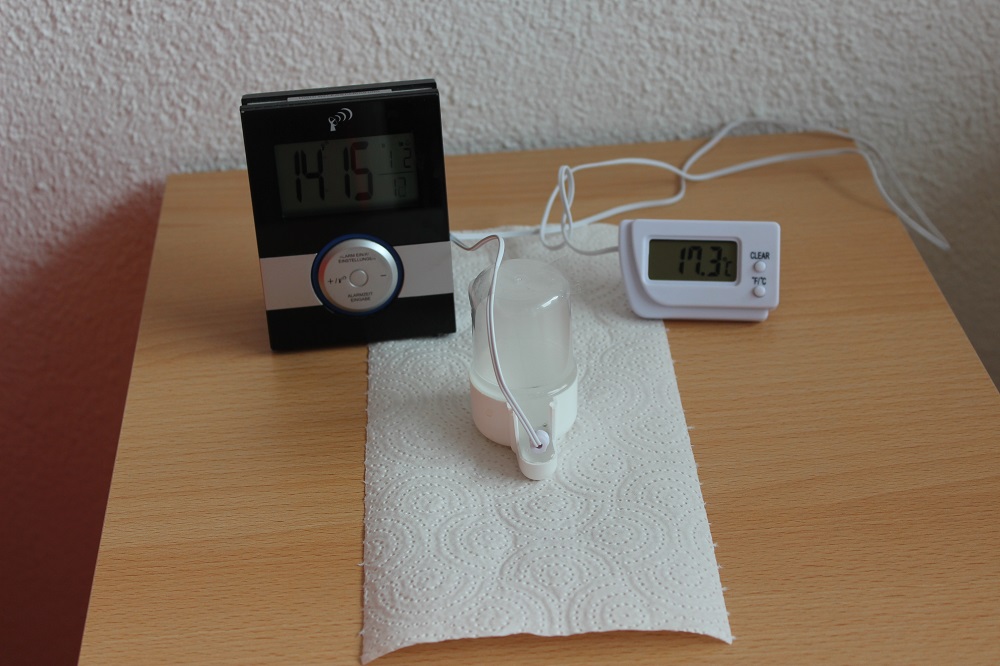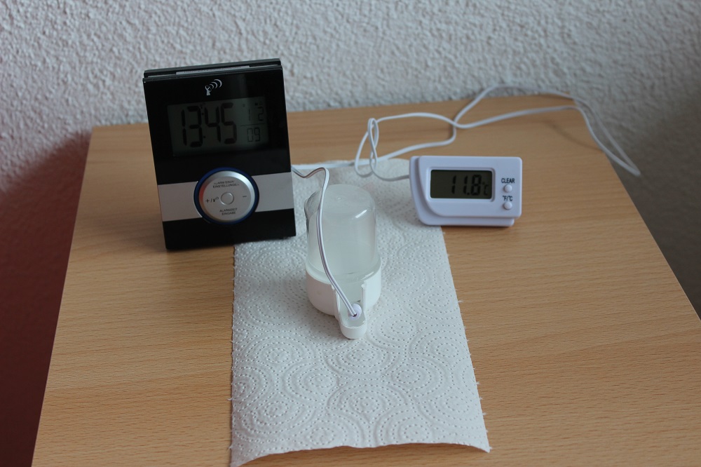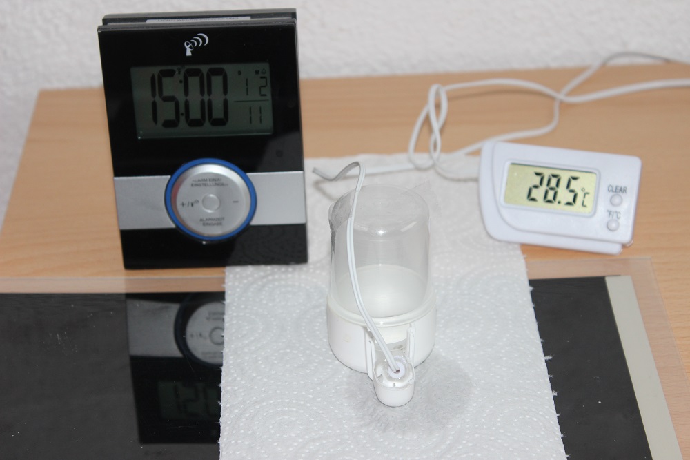 Bis jetzt war nichts ausgetreten, da das Wasser schon annÀhernd Zimmertemperatur erreichte, entschloss ich mich mit einer Heizmatte nach zu helfen.