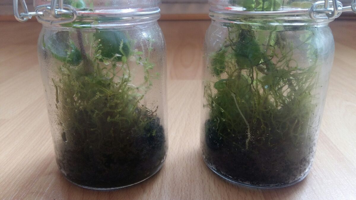 Ich hoffe, dass beide angehen und nicht zu trocken werden, bis ich ein gleichmĂ€Ăiges Klima im Glas habe.