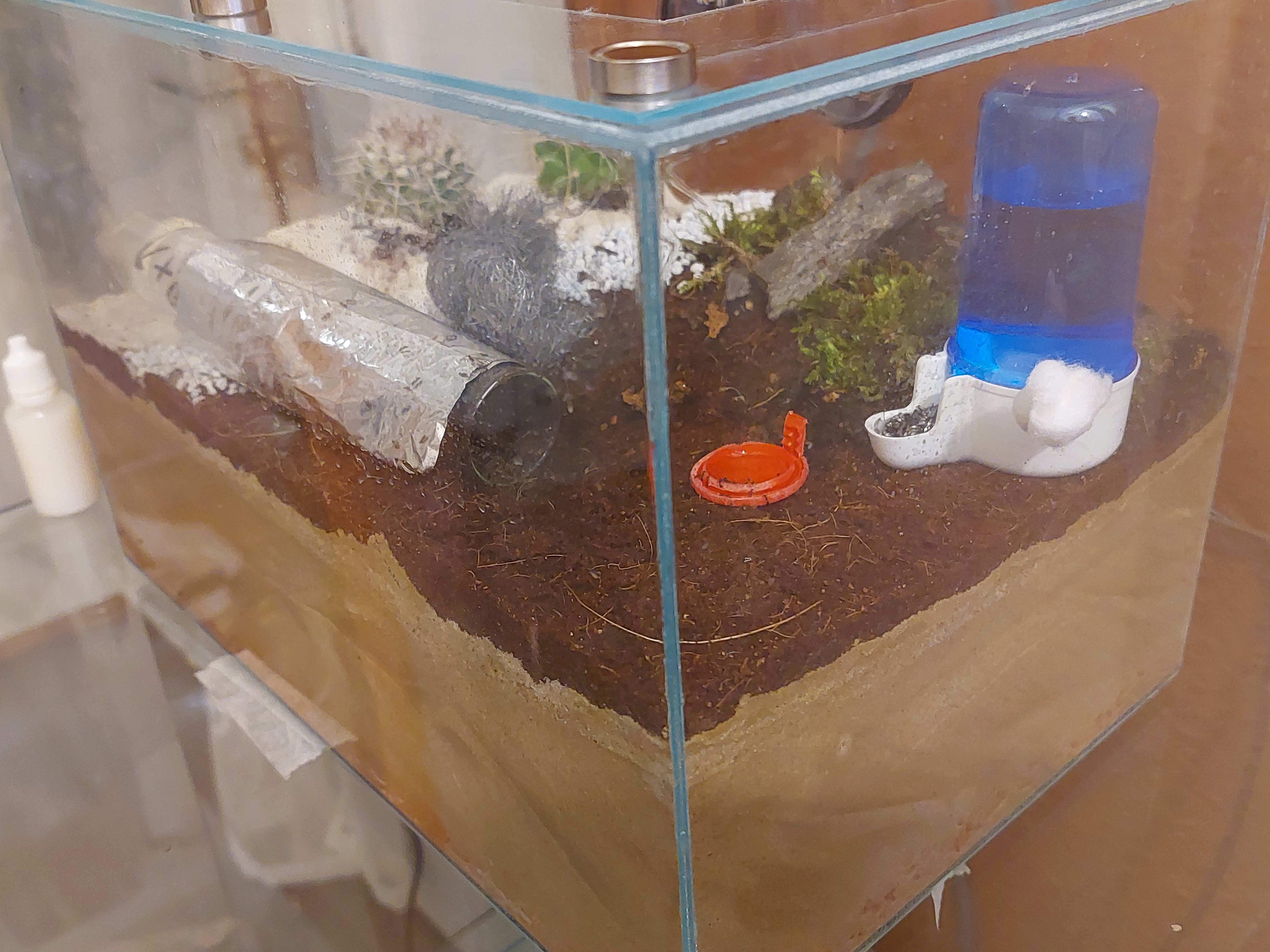 Ich installiere bei diesem Formikarium eine externe TrÀnke, zum Wassertansport verwende ich Saugwunder SchwÀmme. Der Rest sollte selbsterklÀrend sein.