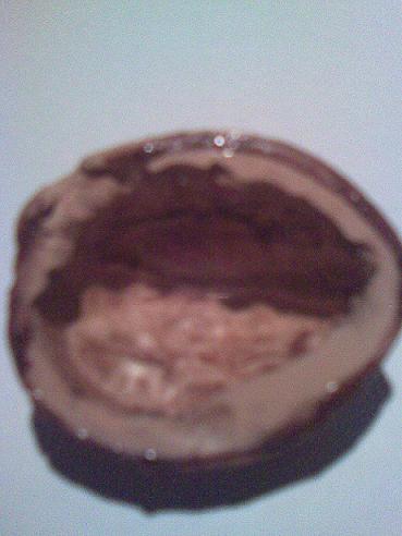 -Jetzt wurds ein bissal kritisch...Den kompletten auf der Walnuss klebenden HeiĂkleber wieder erhitzen so das alles schön zĂ€hflĂŒssig ist und dann mit einem Schwupps auf die Folien geklebt