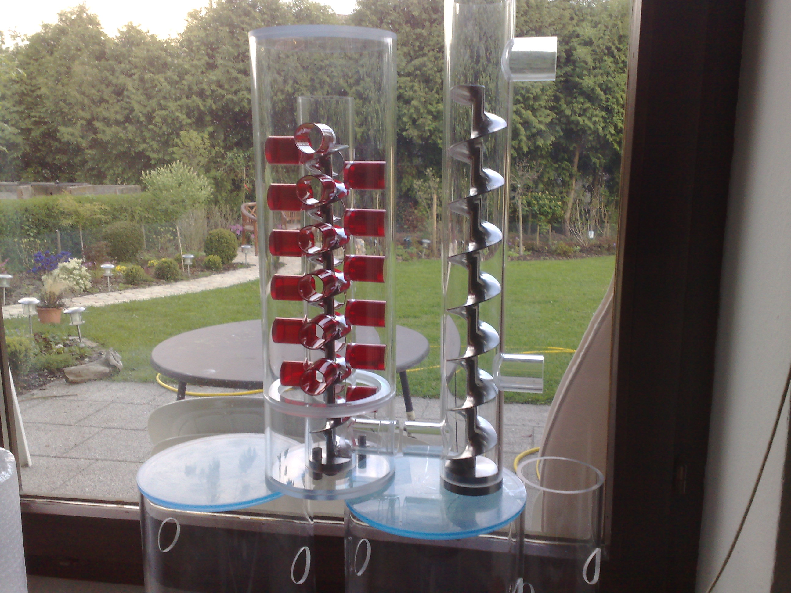 welche Spirale? Die große, oder die kleine? Naja, is alles selbergemacht, also die Spirale hab ich nicht selber gemacht, aber wir fertigen solche Teile in der Firma und das ist ein Ausschussteil (Ausschussspirale), dann brauchst noch das passende plexiglasrohr (aus so einem Auktionhaus), in dem Fall 70/60x500mm die Bohrungen reinmachen, die EndstĂŒcke frĂ€sen und planen, dann einschrumpfen Deckel + Boden drehen fertig.