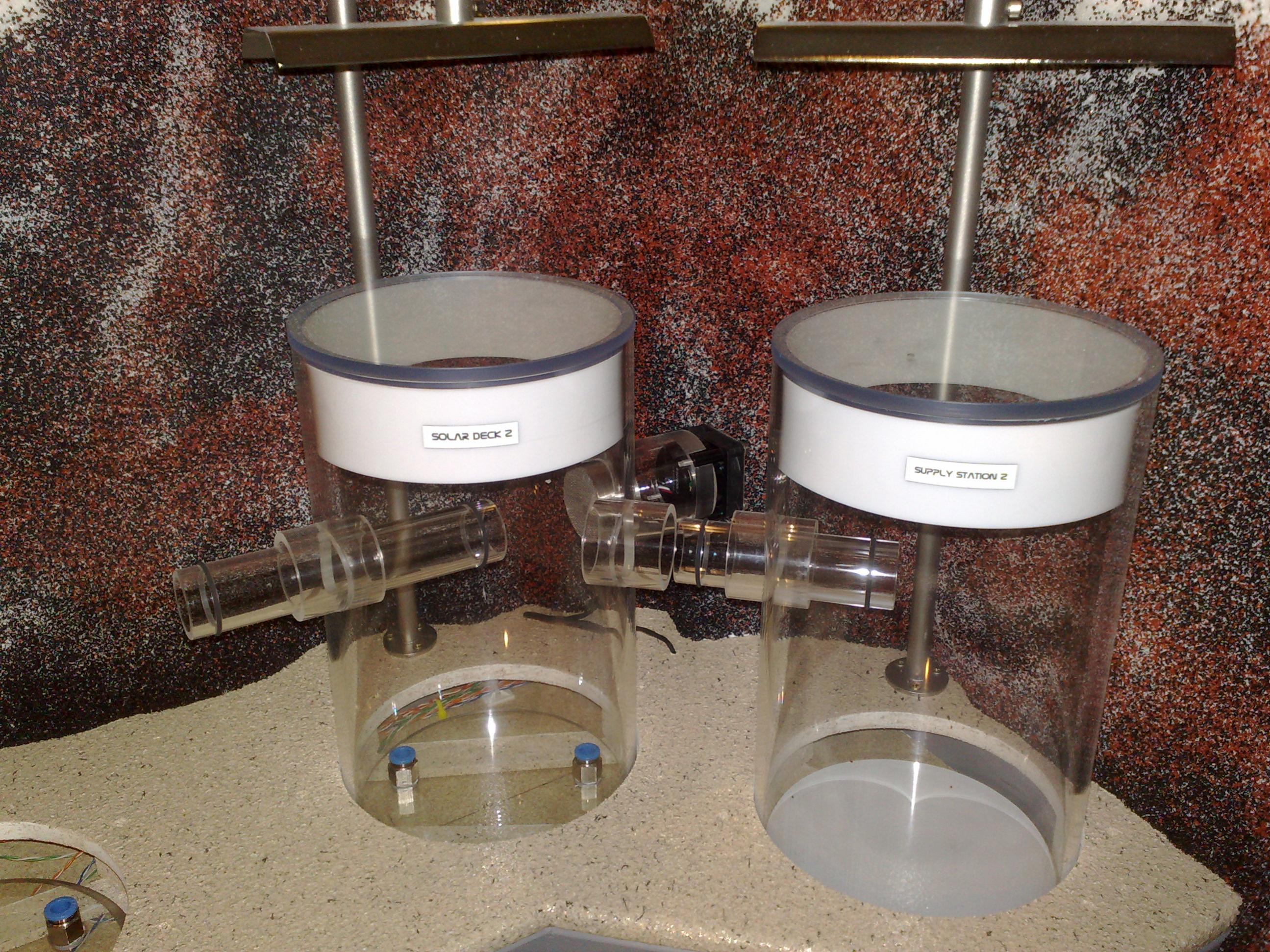 Dazu bestehen die Röhren aus Acylglas (nichts besonderes) die Deckel allerdings aus Makrolon und eine StÀrke von 10-12mm :-) Das ist sozusagen gehÀrtetes Acrylglas, stossfest und wird als Sicherheitsglas an z.B. FrÀsmaschinen, etc. verbaut. Das ist echt ein ultra, cooler Kunststoff, nicht zu vergleichen mit Acryl!!!!