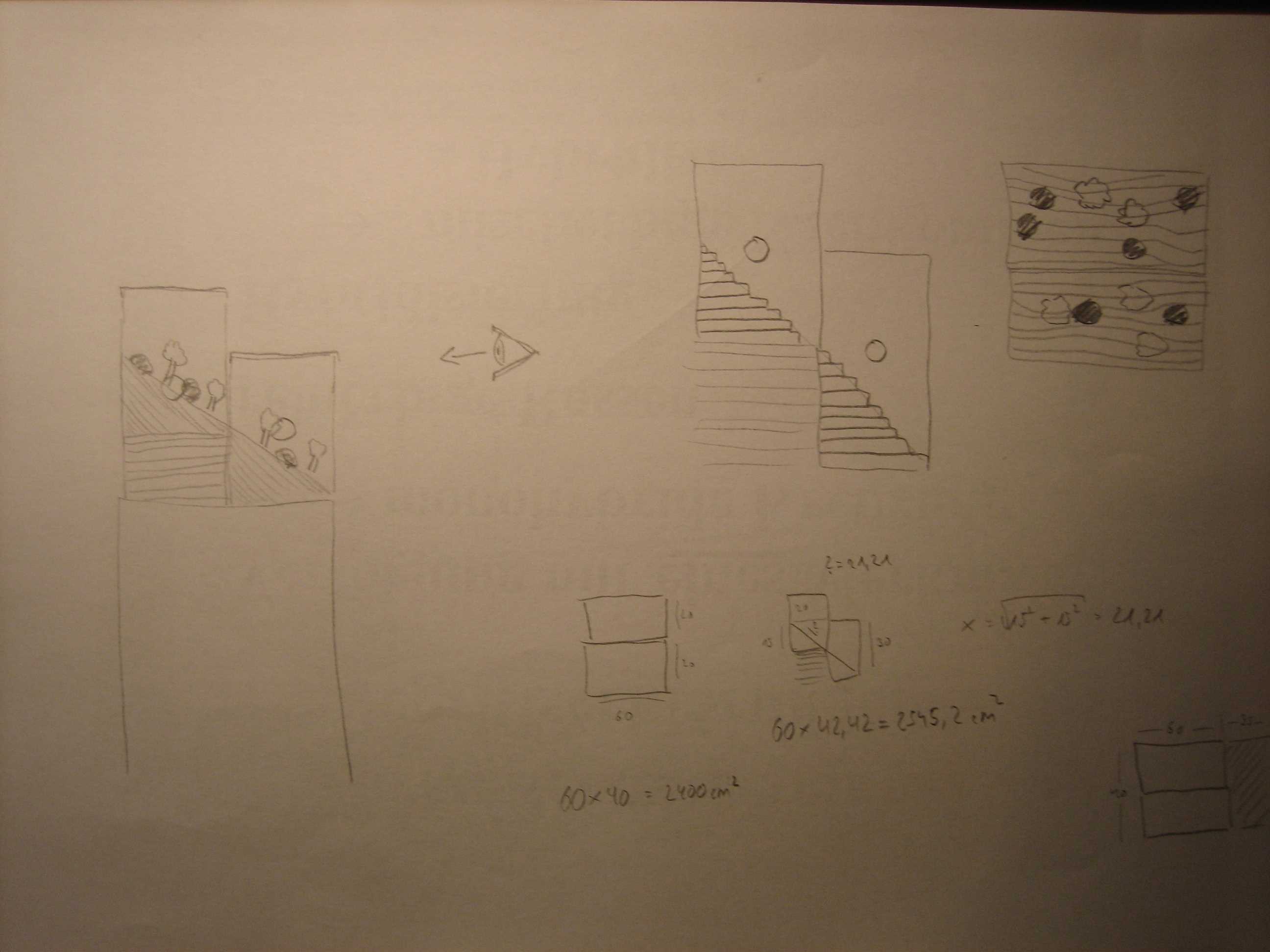 Durch diese zusätzliche und einfache Schräge habe ich eine Oberflächenvergrößerung von weiteren 145,2cm² erreicht, von anfänglichen 2400cm² (siehe Skizze). Ist nicht die Welt, aber immerhin etwas. Außerdem kann ich so besser das hintere Becken betrachten.