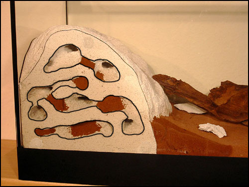 Mein Vorschlag und das hatte ich auch schon in Planung: Halbiere den HĂŒgel und setz ihn an die Glasscheibe. So hat man immer einen Einblick ins Nest und zudem eine "naturgetreue" Abbildung eines Nestes.