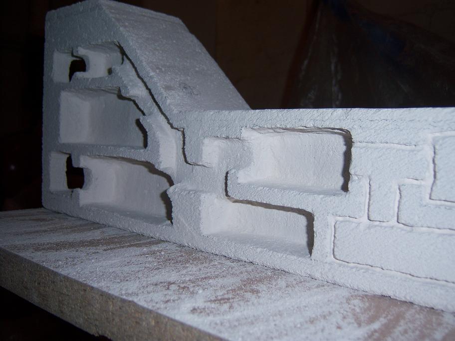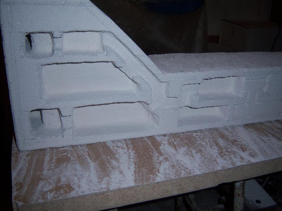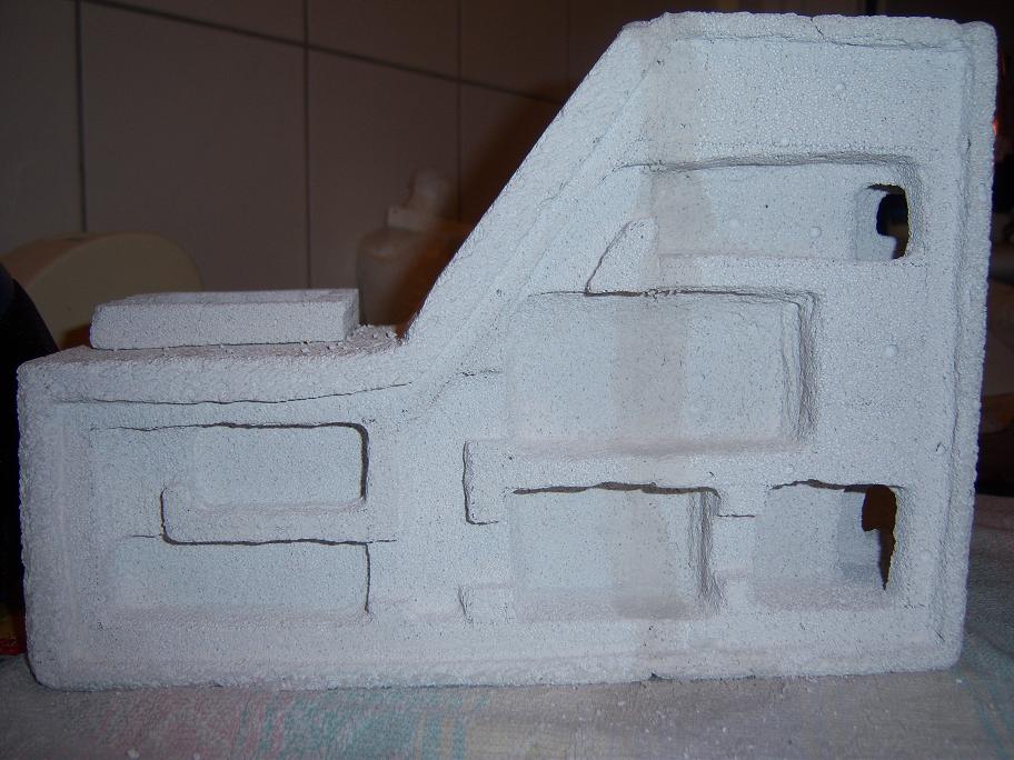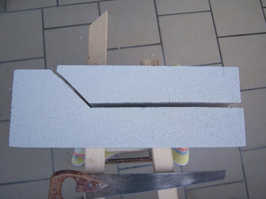 Als erstes habe ich das Styrodur zurechtgeschnitten und das innere Ytong-EckstĂŒck angeklebt.