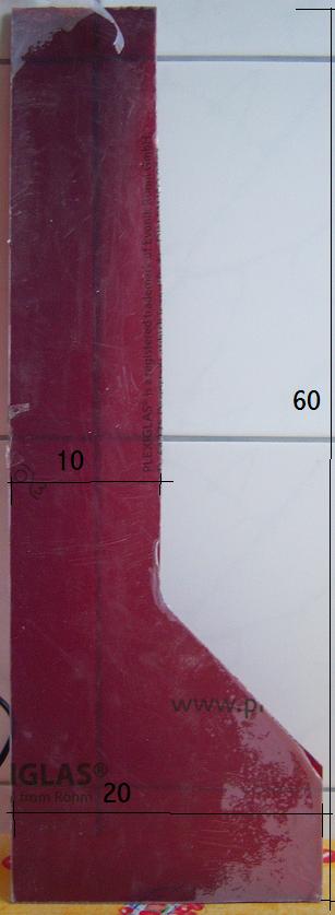 Hier mal ein Bild vom Plexiglas, was für die lange Frontseite gedacht ist, mit den ungefähren Maßen.
