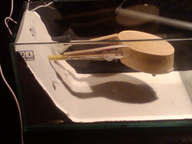 Die Halme, die von der Scheibe weg zeigen, sind fĂŒr die Befeuchtung, die liegenden Strohhalme an der Scheibe sind die GĂ€nge. In der Standardbohrung des Beckens habe ich noch einen Halm platziert, der spĂ€ter als Kabelkanal fĂŒr die Beleuchtung dient. Bei den Strohhalmen, die eigentlich auch aus Kunsstoff sind, habe ich die, mit der behindertengerechten Krabbelhilfe fĂŒr Ameisen, ausgewĂ€hlt, wenn Steigungen zu nehmen sind.