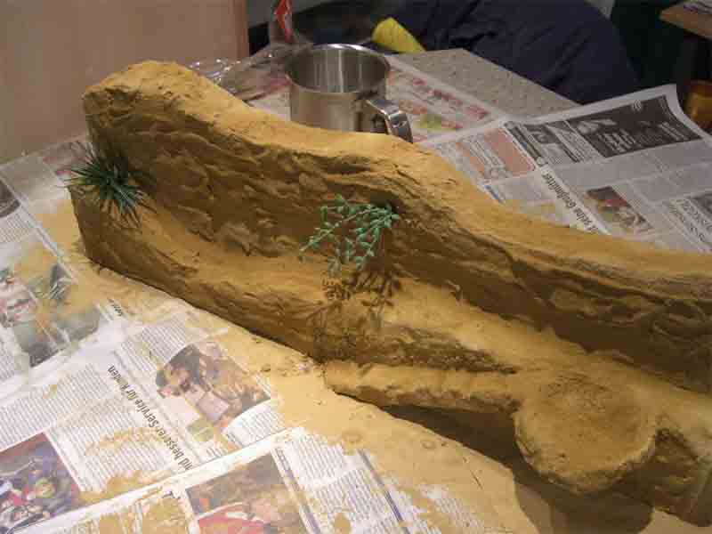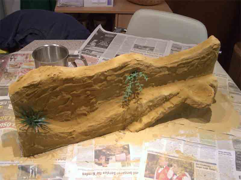 Dann noch eben mit nem Stabfeuerzeug das Styropor etwas angekokelt, um dem Ganzen ein paar Konturen zu verpassen.