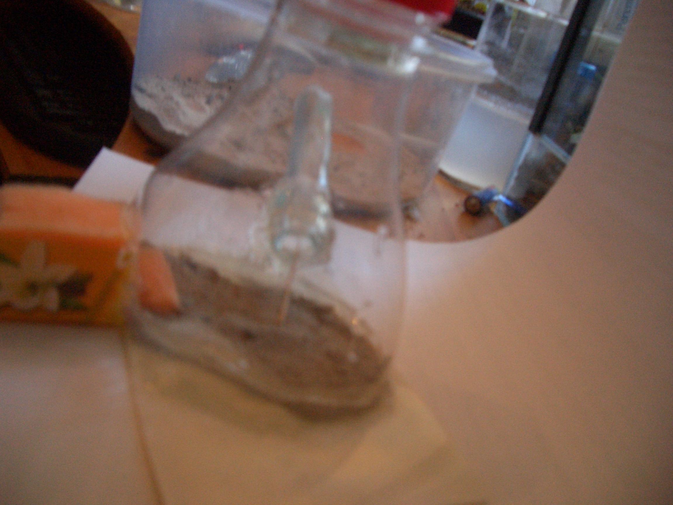 Dieser wird nun auf einen Plastikboden geklebt. Seitlich wird eine kleine Ăffnung zur Wasserversorgung angebracht. Diese wird durch ein kleines Becken mit Schwamm gewĂ€hrleistet. (hier ist es wichtig, dass die MaĂe stimmen und keine Möglichkeit zum Ausbruch gegeben wird.)