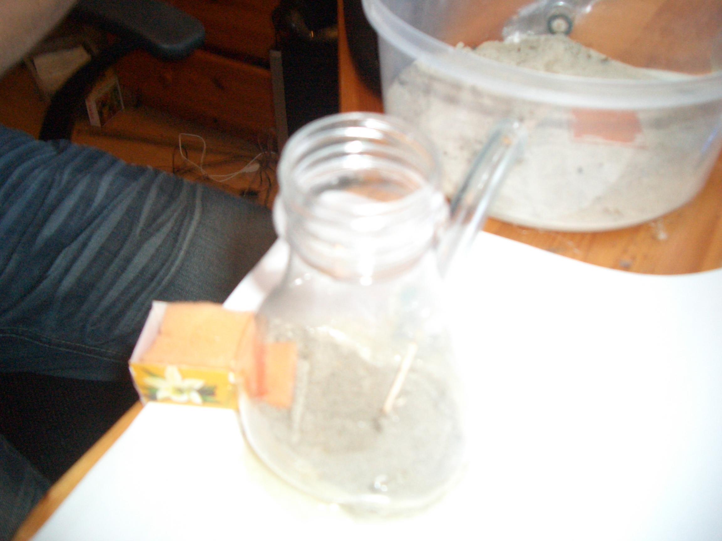 - Einfach Flasche unten in Wasser stellen, dieses zieht nach oben (klappt sehr gut)