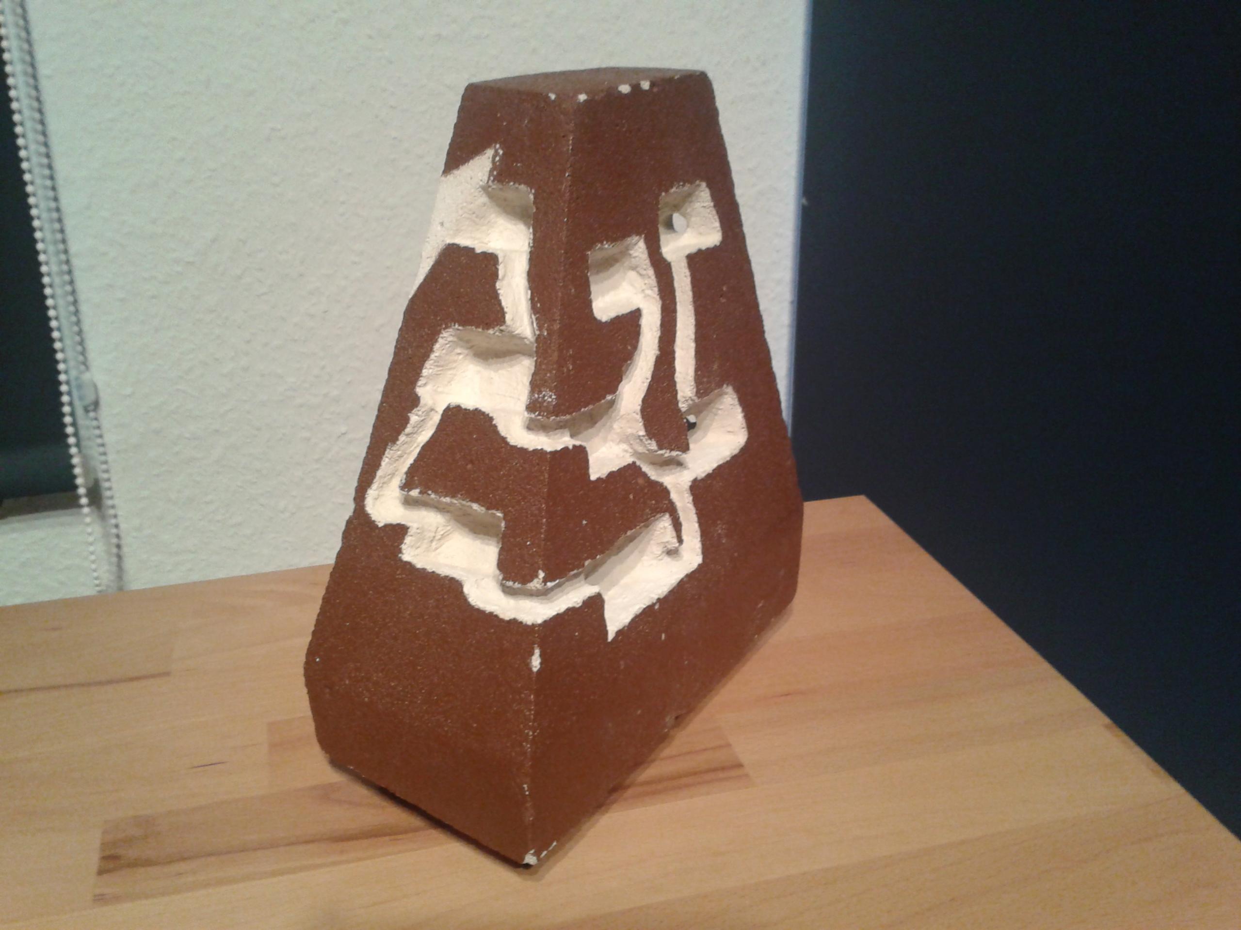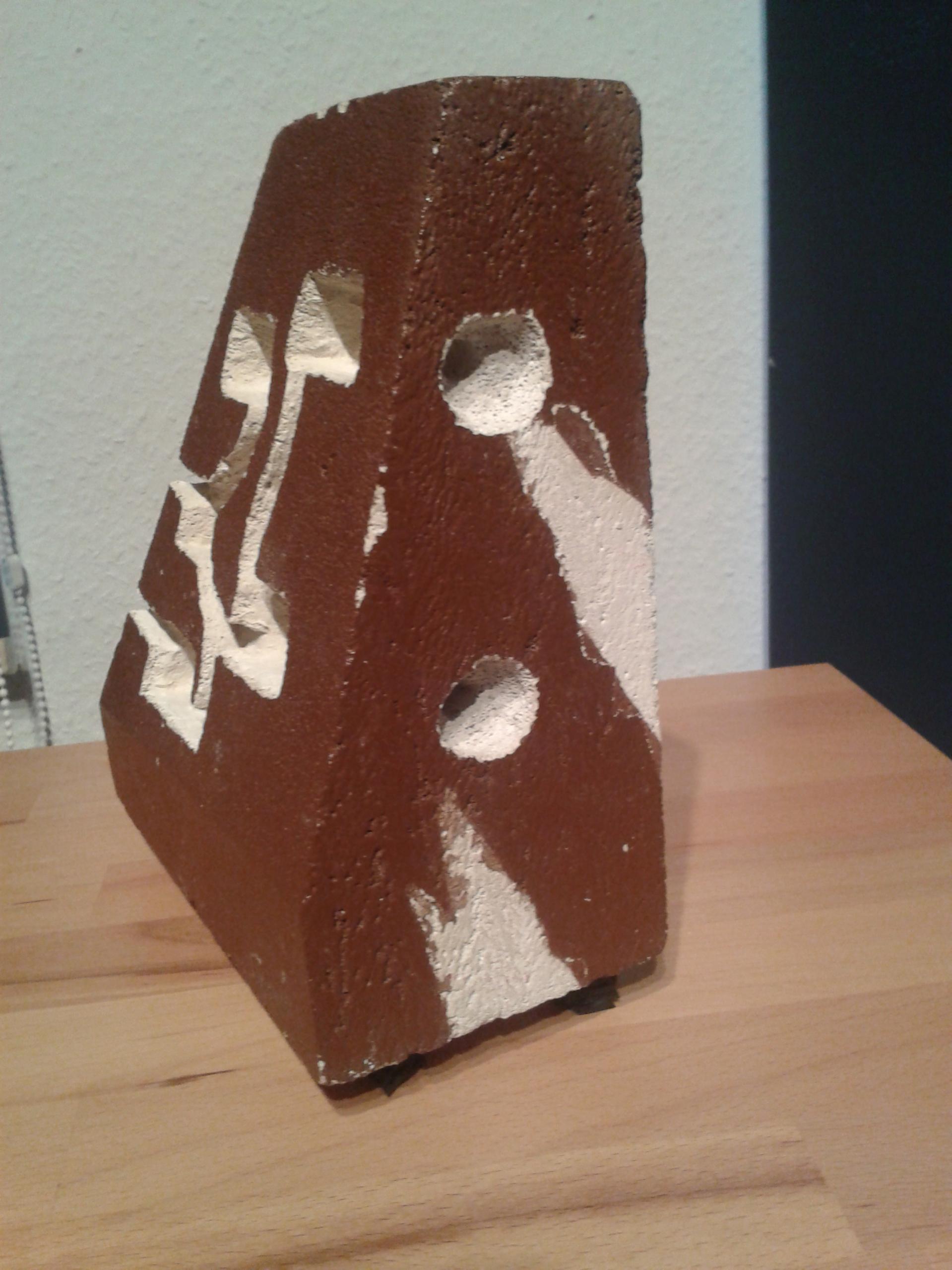 Den Stein habe ich mit braunem Buntlack (wetterbeständig) besprüht. Der Lack war nicht als ungiftig deklariert, allerdings haben die Meisen in den Kammern und Gängen keinen Kontakt mit der besprühten Oberfläche.