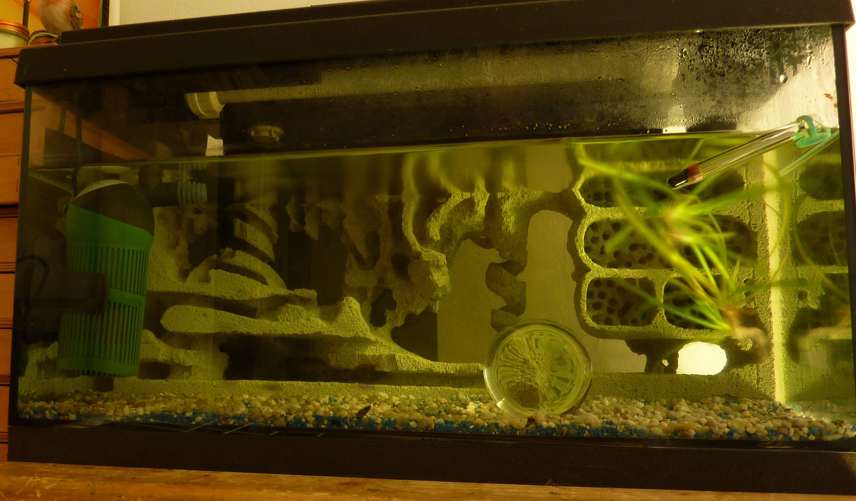 Da ich ein Becken übrig hatte und meine Freundin begeisterte und fähige Aquaristin ist, habe ich jetzt ein Aquarium. gg