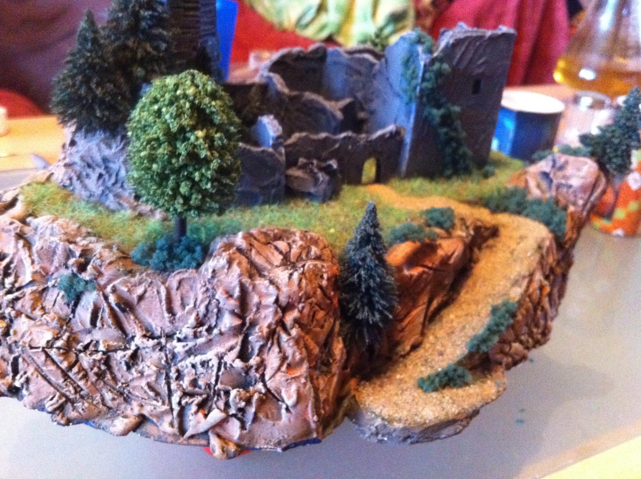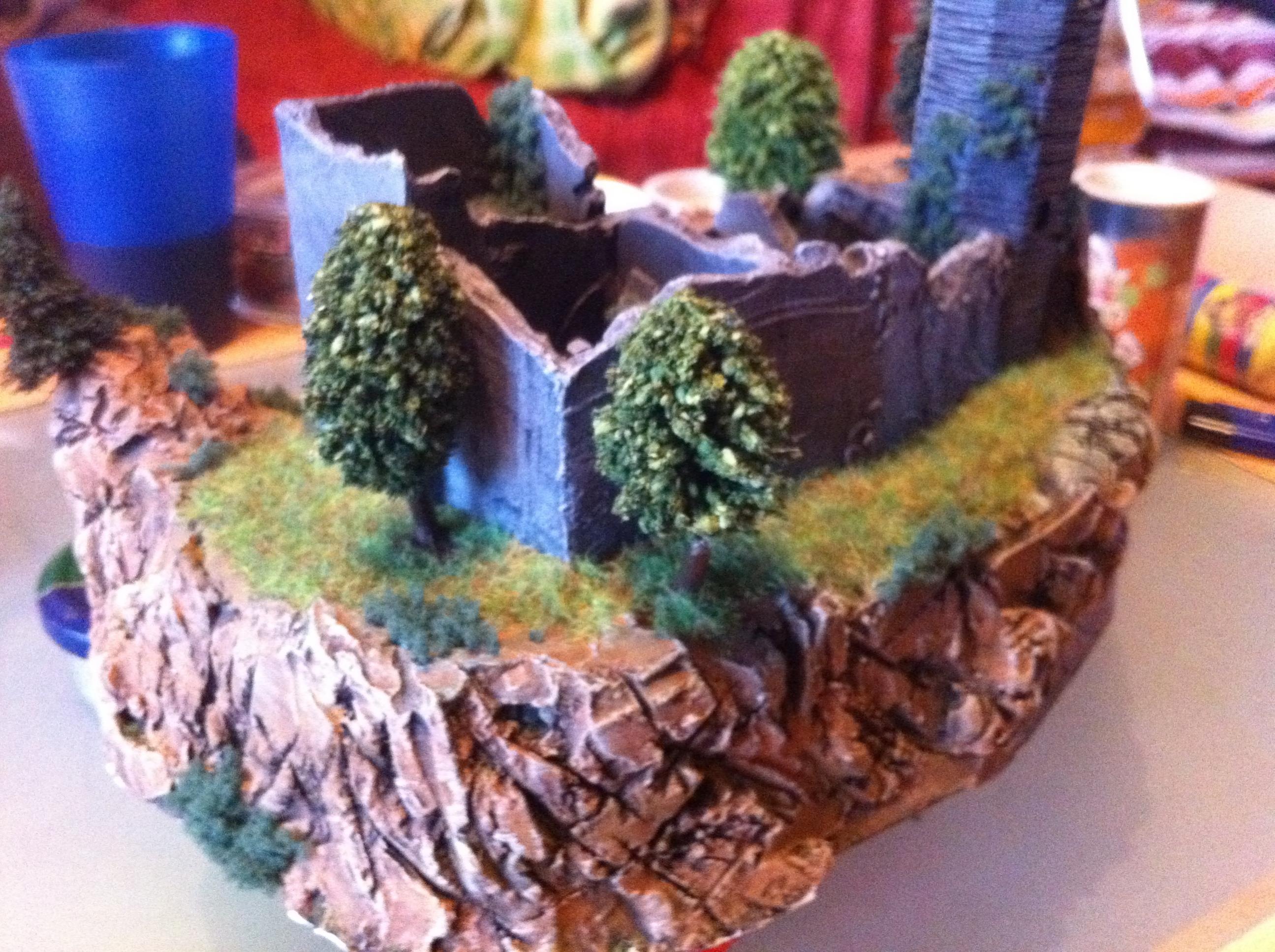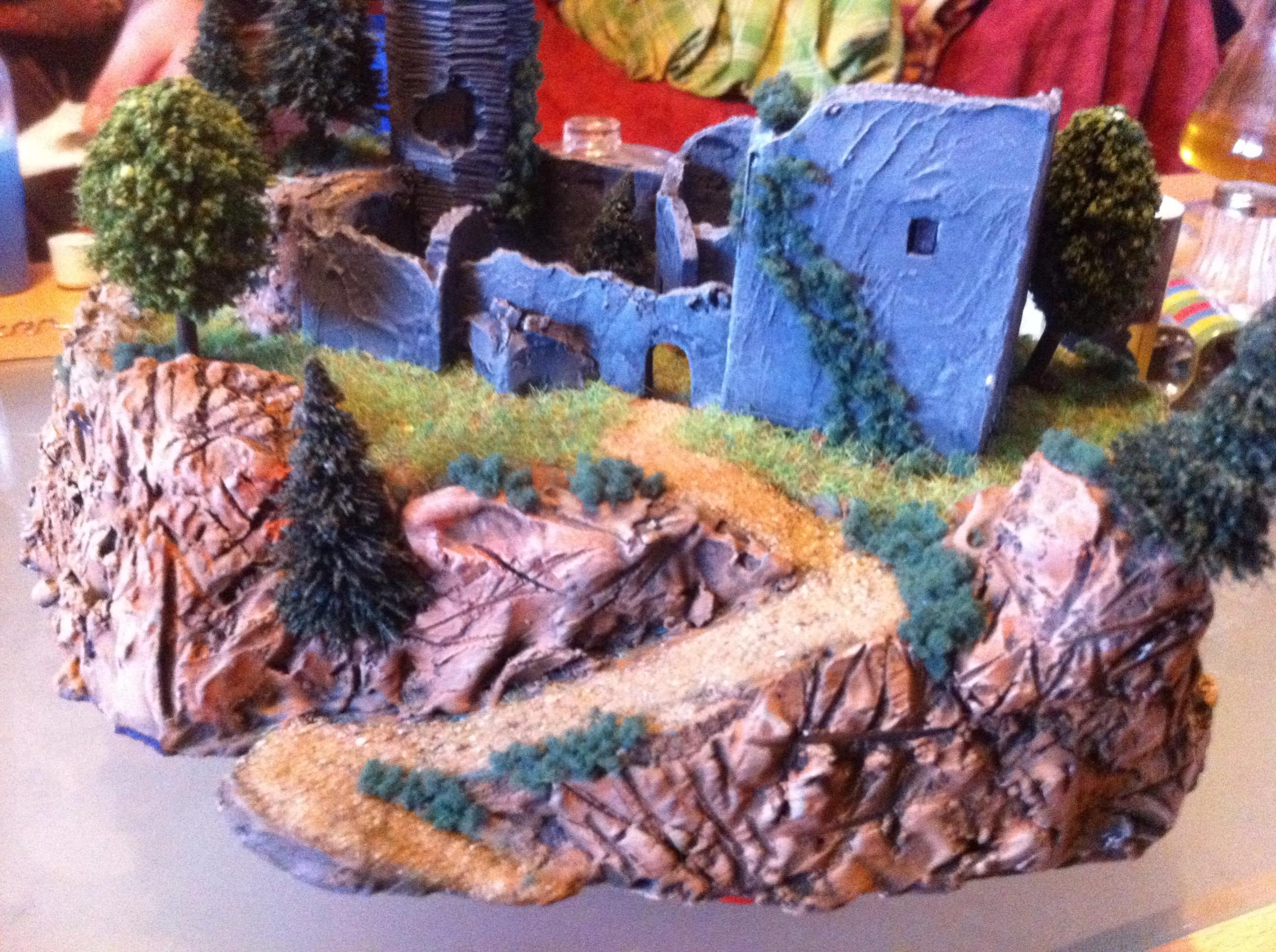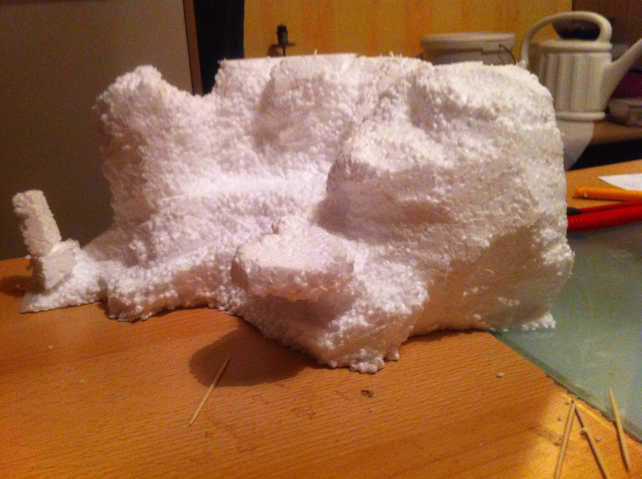 Nachdem der Rohbau der Ruine stand, habe ich den Sockel mit Styropor erhöht und mit Gips verspachtelt.