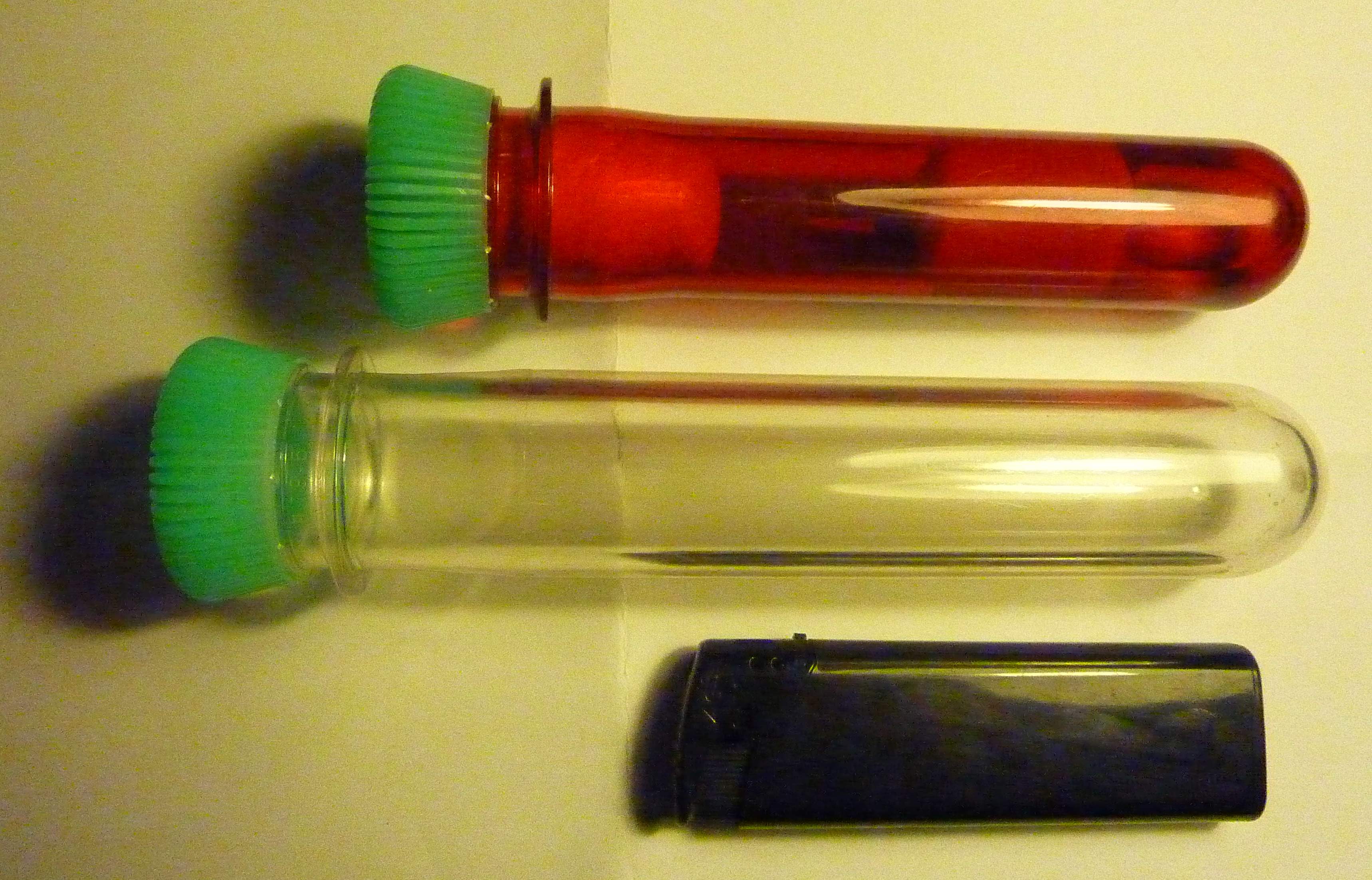 Als Tankverschluss habe ich bei diesem "Prototyp" einen halbierten Tampon verwendet der hoffentlich keine/nicht allzuviel Chemie enthällt.
