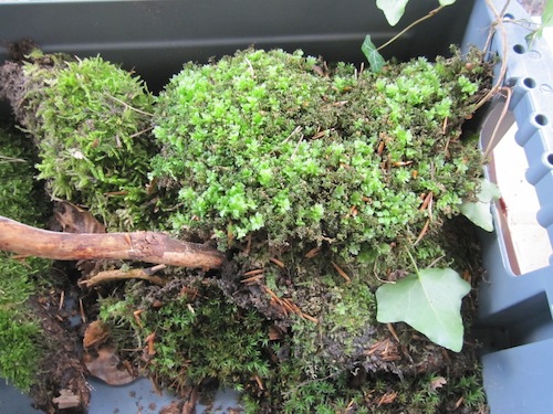 Becken mit Moos Diese Moose habe ich alle trocken gehalten und sie halten sich locker eine Saison grün, auch wenn man sie komplett trocken hält. Moose verlieren ihre Frabe nicht so schnell. Also einfach trocknen lassen und hinein ins Becken.