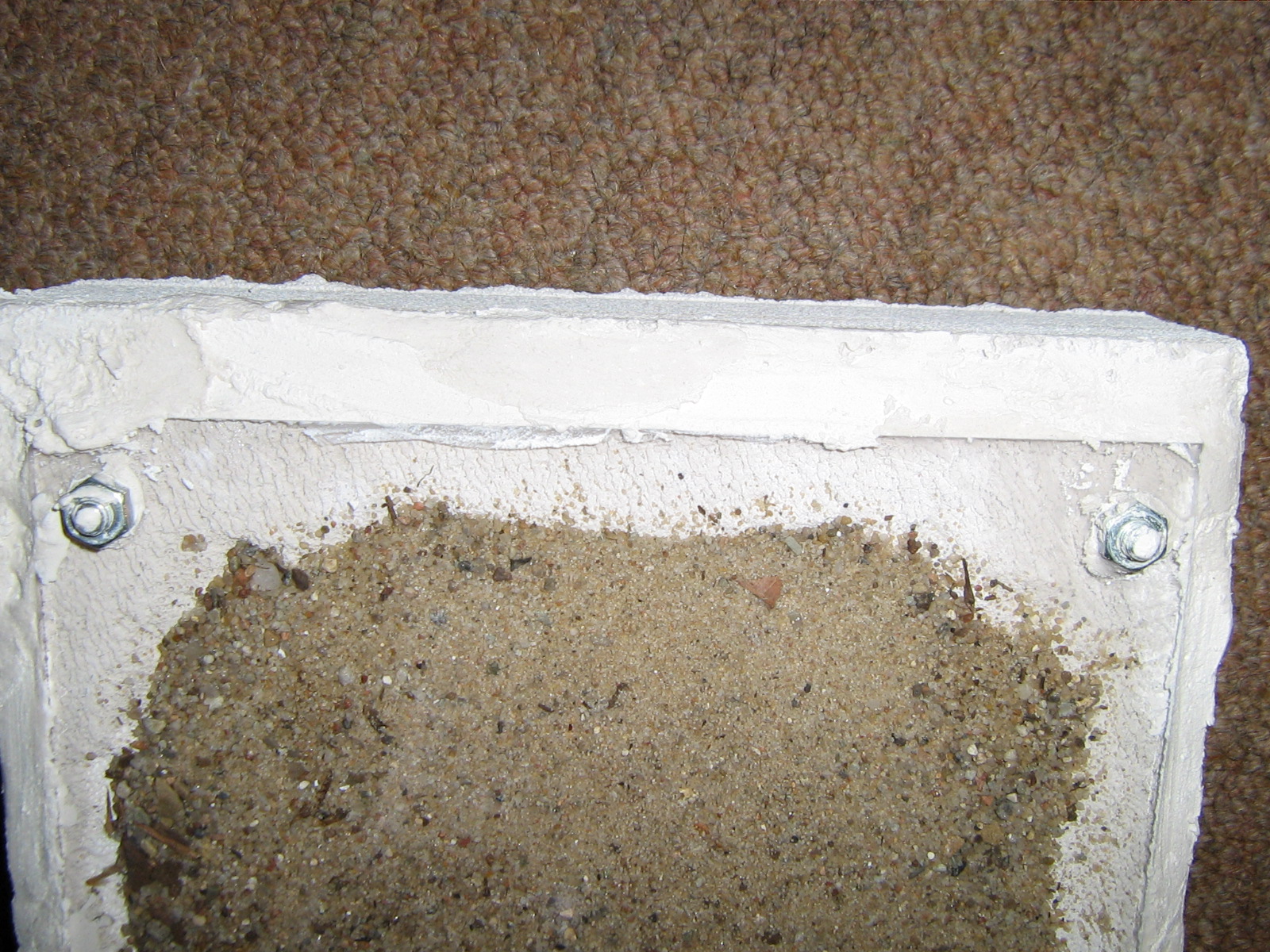 Bild 1: fertiges Nest mit aufgesetzter Scheibe, Sandfüllung und mit Gips versiegelten Löchern und Ritzen