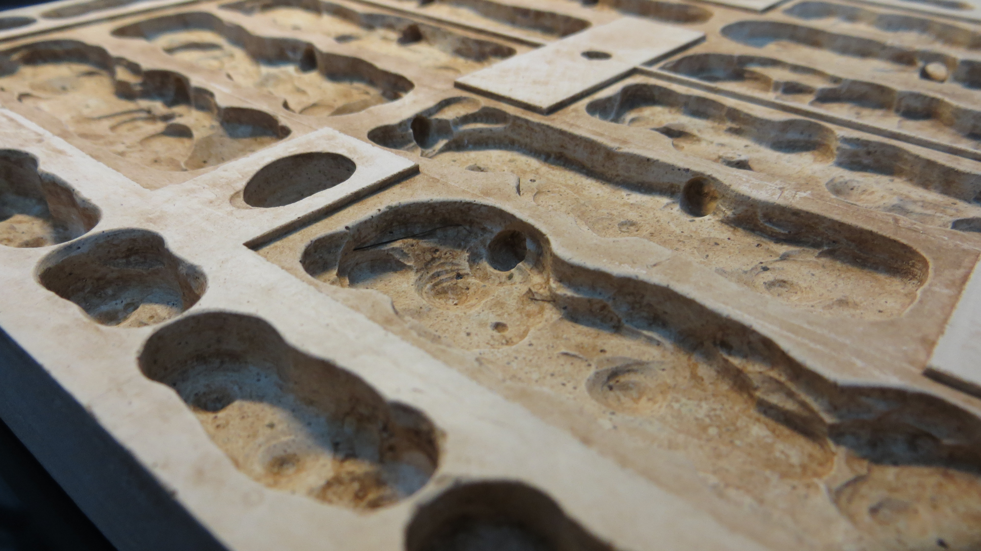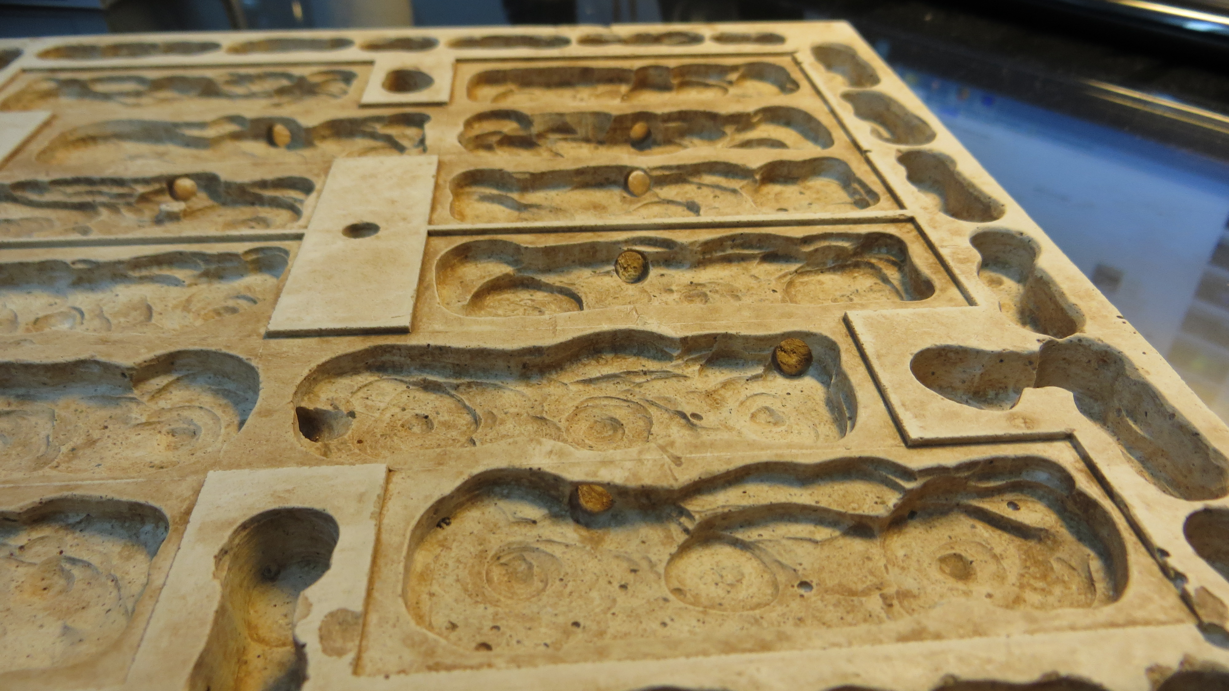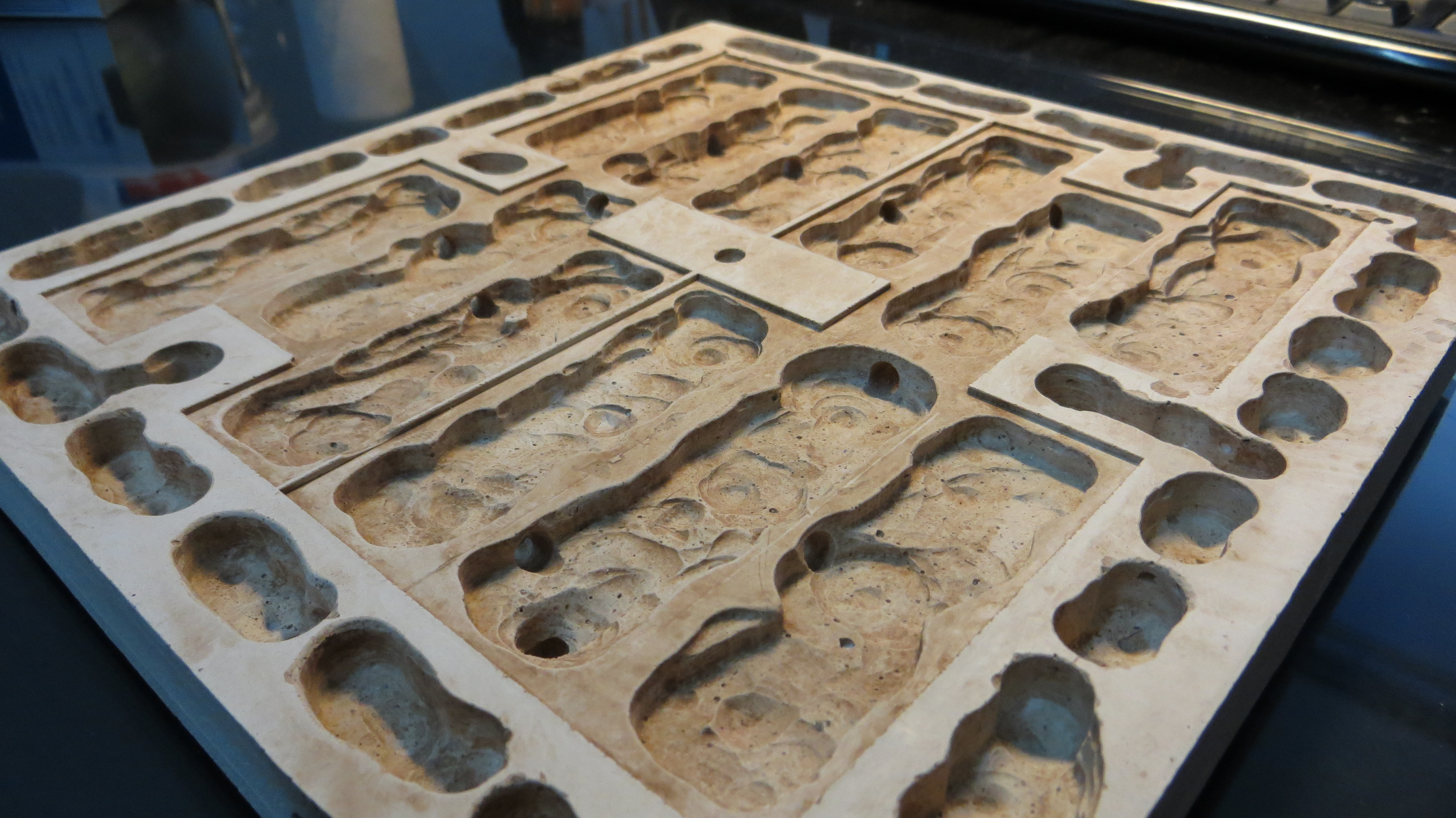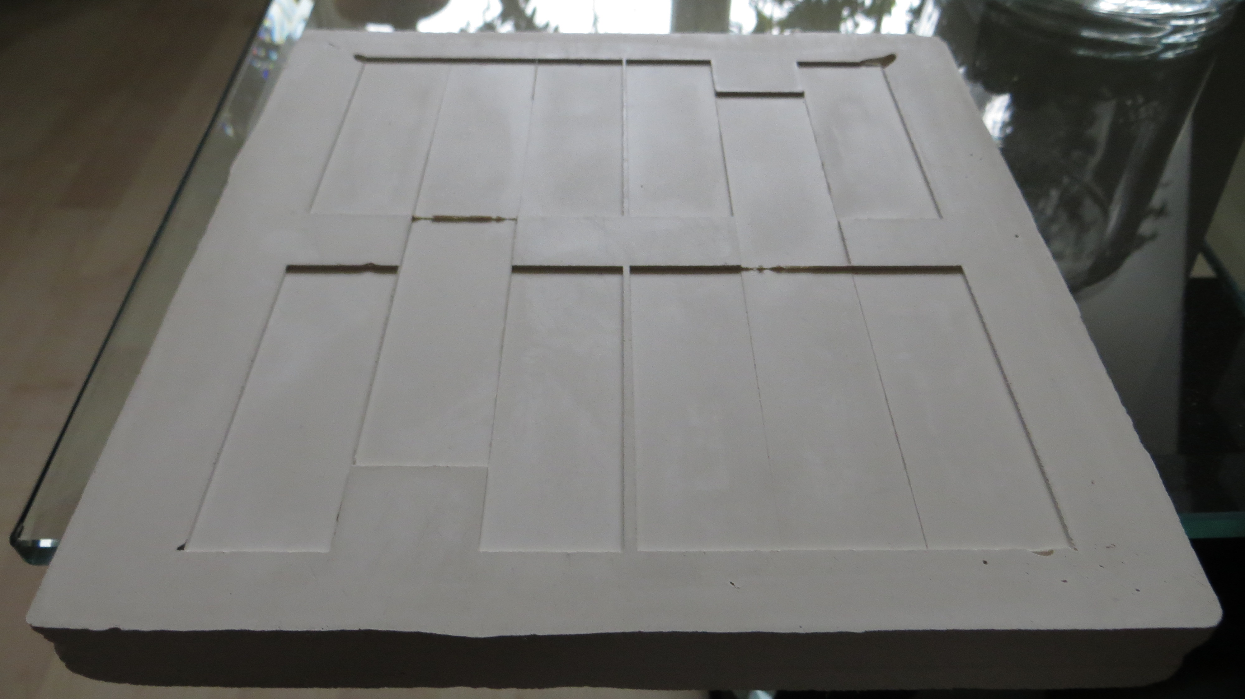 Mit Gips ausgießen, nach dem Erstarren wird die Gipsplatte herrausgelöst.(Bild1)