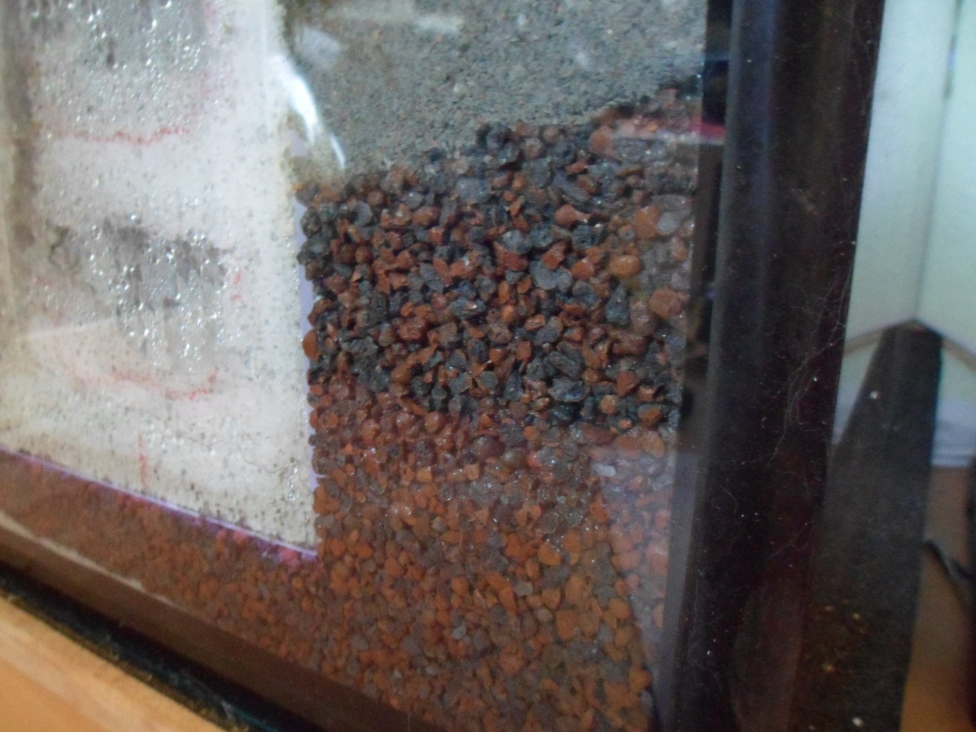 Aufbau wie folgt: 12 cm BlÀhton Granulat, dazwischen sind noch 2 10 cm starke Ytong Steine lose eingelegt in der FlÀche.Darauf folgt eine Wurzelschutz matte, und dann 3-6 cm von meinem Bodengrund. Die Versuchsreihe war mit 40 - 60 - - 80% LF. Das Material erwies sich als NICHT Grab fÀhig mit diesen Parametern. Wichtig ist das es kein stehendes Wasser gibt und alles in die Speicherschicht nach unten ablaufen kann.