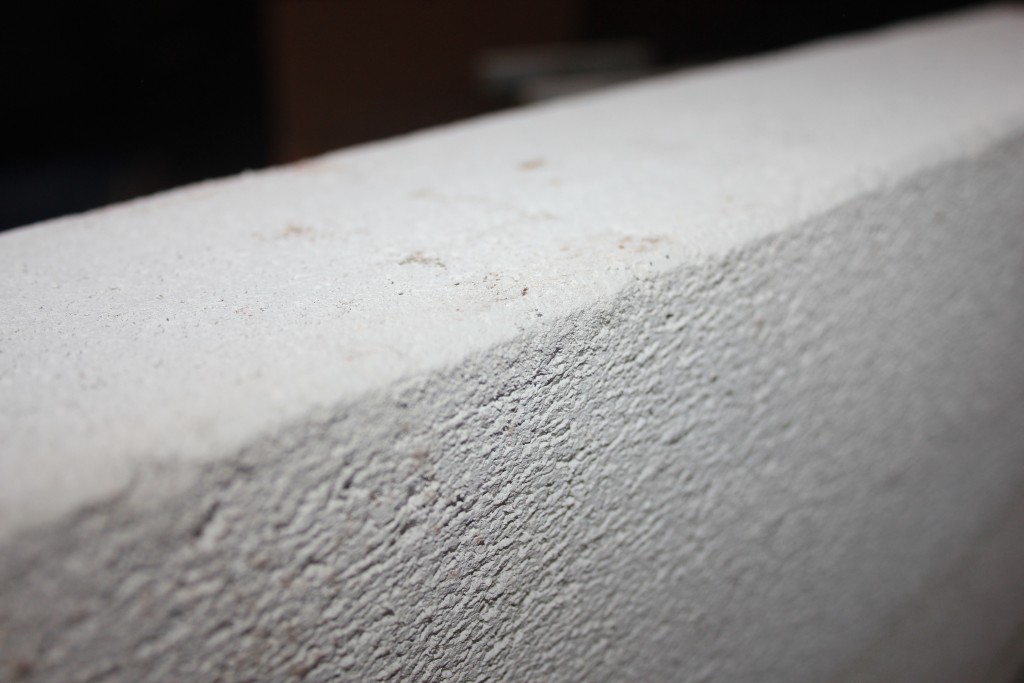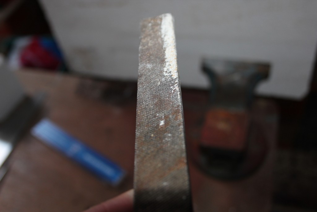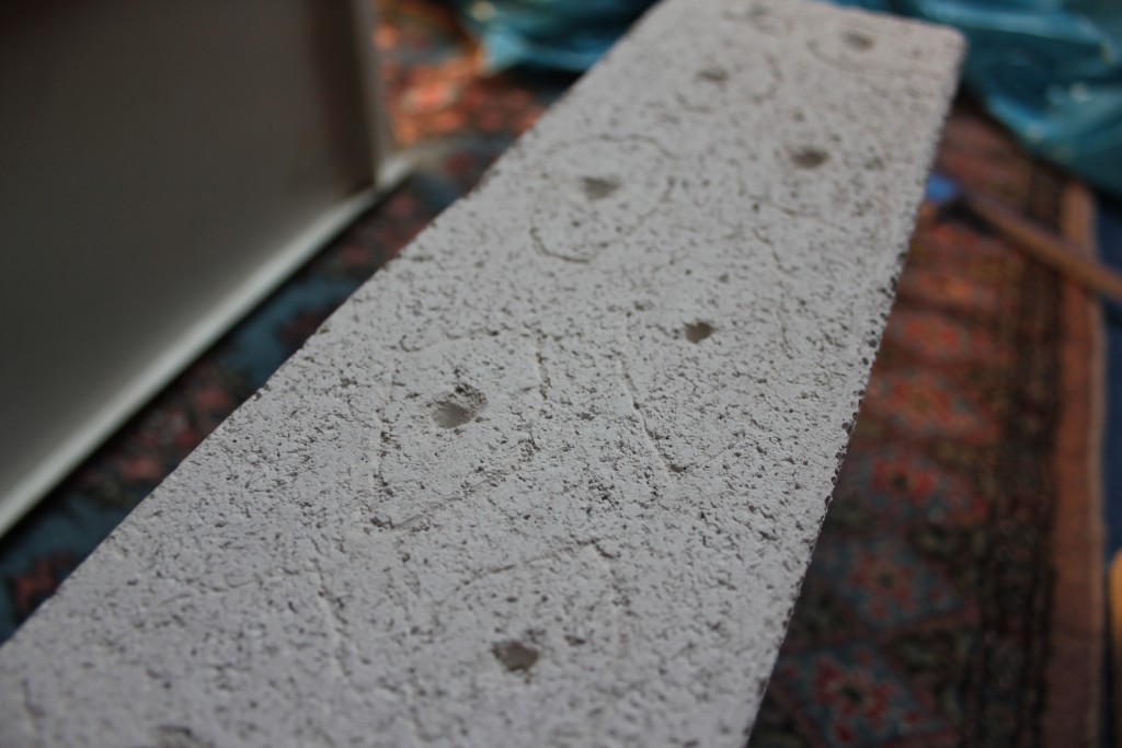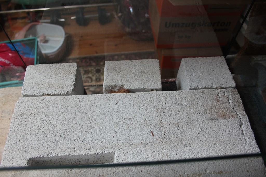 Die Bruchkante (Bild 3) habe ich mit der Feile (Bild 4) und dem Schleifbrett begradigt und auch an alle Kanten Phasen gefeilt (Bild 5), das ist eine Gewohnheit aus meiner Ausbildung, wo ich mit Stahl gearbeitet habe, am Ytong wird sich zwar keiner schneiden, aber es hatte sich hinterher gezeigt, dass das fĂŒr die Passgenauigkeit notwendig war wegen dem Silikon in den Ecken des Terrariums :D .