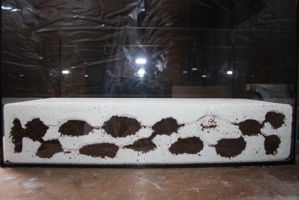 Danach habe ich etwas ungedĂŒngte Terrarienerde in alle Kammern ausser die Eingangskammer gegeben und das Nest ins Terrarium gelegt (Bild 9).