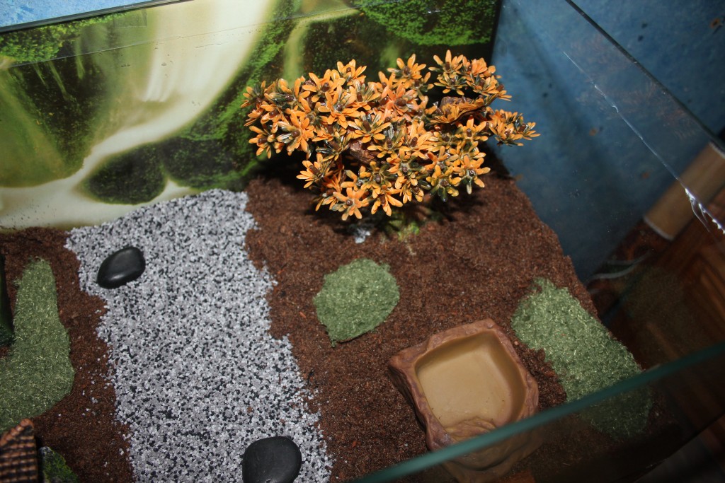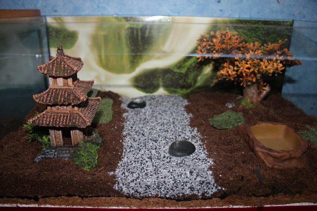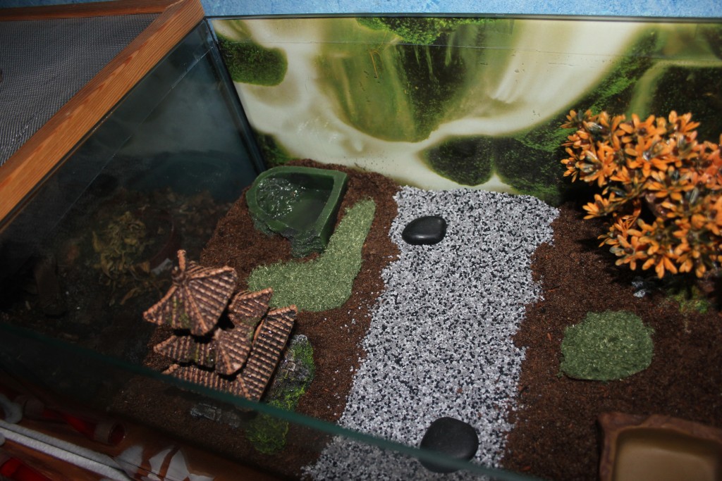 - Diverse EinrichtungsgegenstĂ€nde & Substrat (DĂŒngemittelfreie Terrarienerde, Aquarienkies, Aquarienbonsai & Tempel aus Kunstharz, Kunstmoos, RĂŒckwandposter, Schwarze Flusskiesel, Futterschalen aus Kunstharz, 2 30x30x1 Kokosmatten) (sieht man am Schluss)