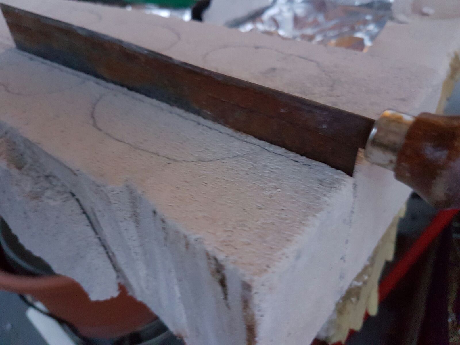 Du kannst den Ytong jetzt hochkant stellen - dann sollte es nochmal deutlich schneller gehen. Musst halt gut halten wenn du keinen Schraubstock oder so hast.