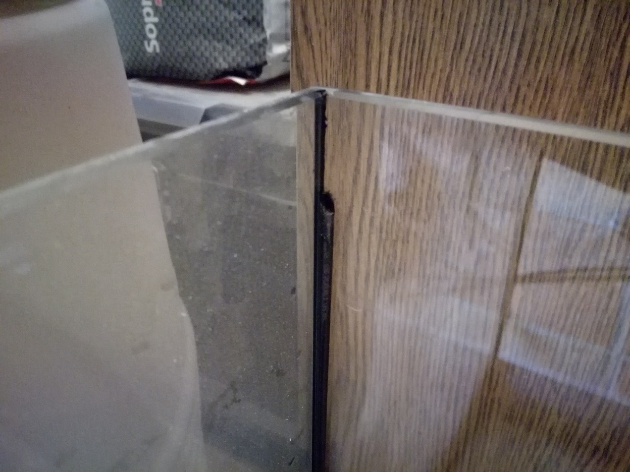 Das Becken ist ein 60x30x35 cm Aquarium. Die SilikonnĂ€hte wurden in den Ecken grob 3 cm entfernt fĂŒr eine bessere Sicherung.