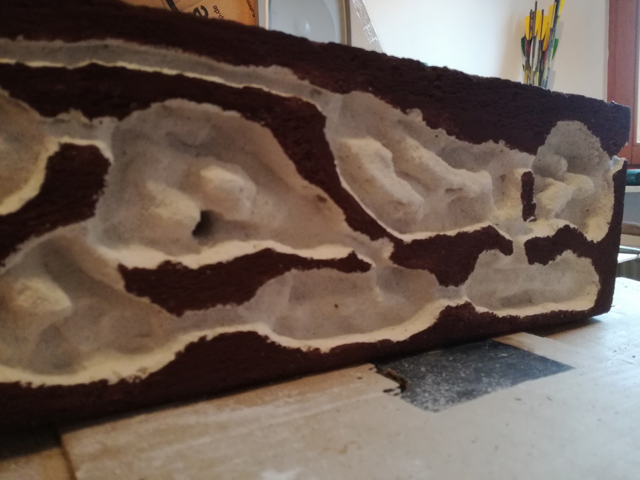 Das Ytong-Nest wurde anschlieĂend ausgewaschen, die Nistkammern mit einer sehr dĂŒnnen Gips-Mischung ausgepinselt und im nassen Zustand mit weiĂem Sand-/Lehm-Gemisch ausgeworfen.