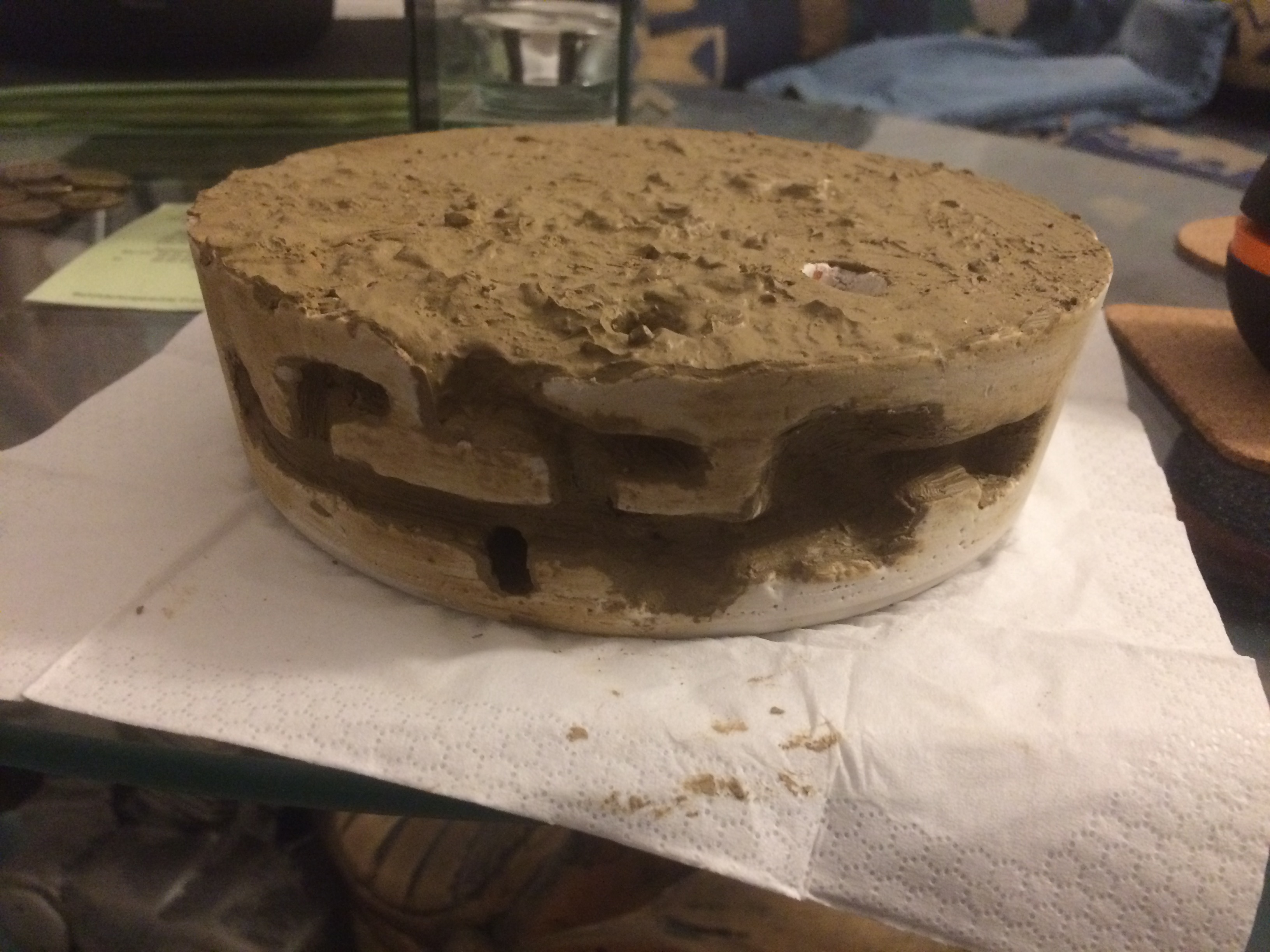 Zu guter letzt habe ich die Arena oben und den Nestbereich mit feuchtem Lehm dick eingepinselt.