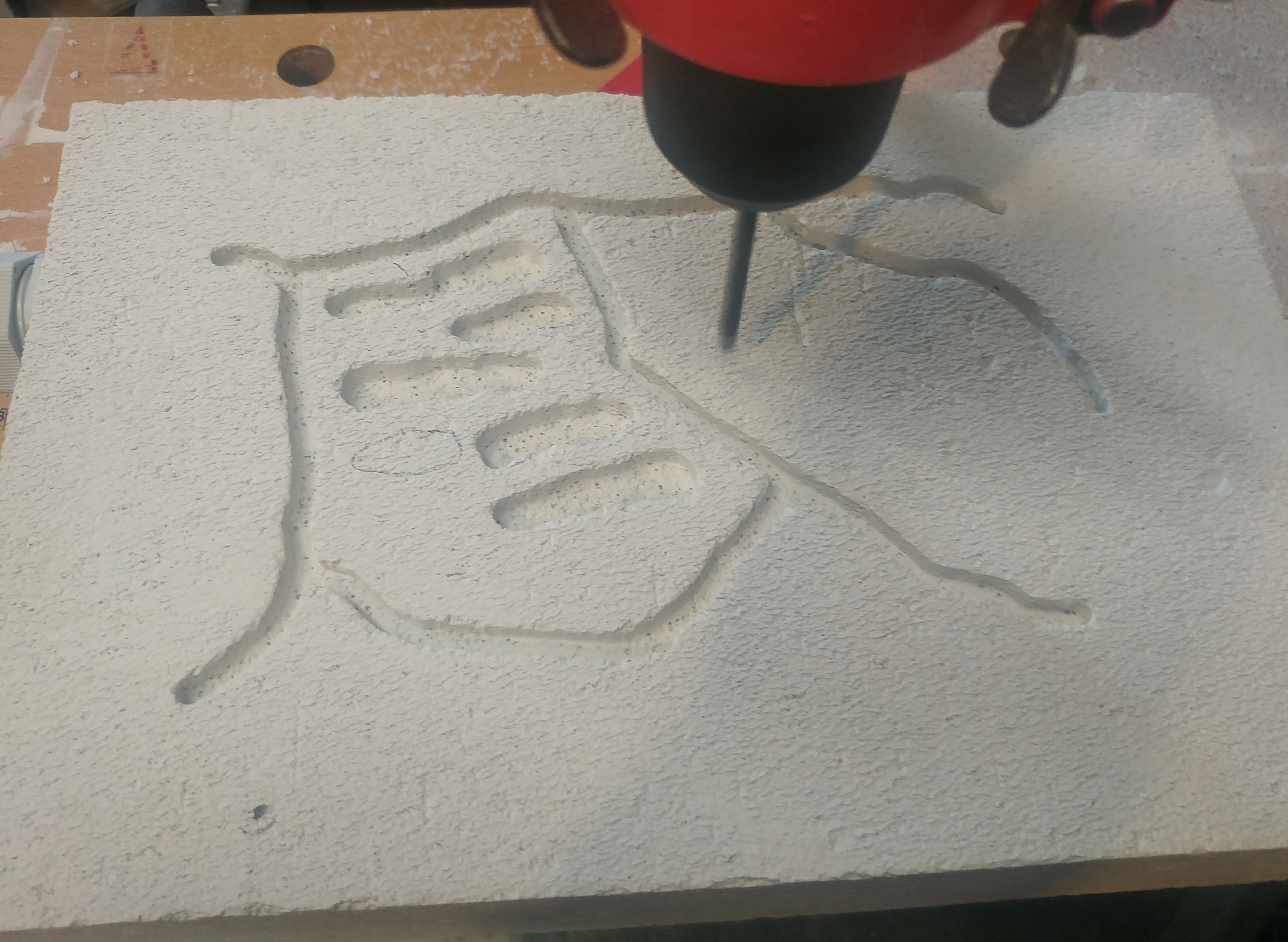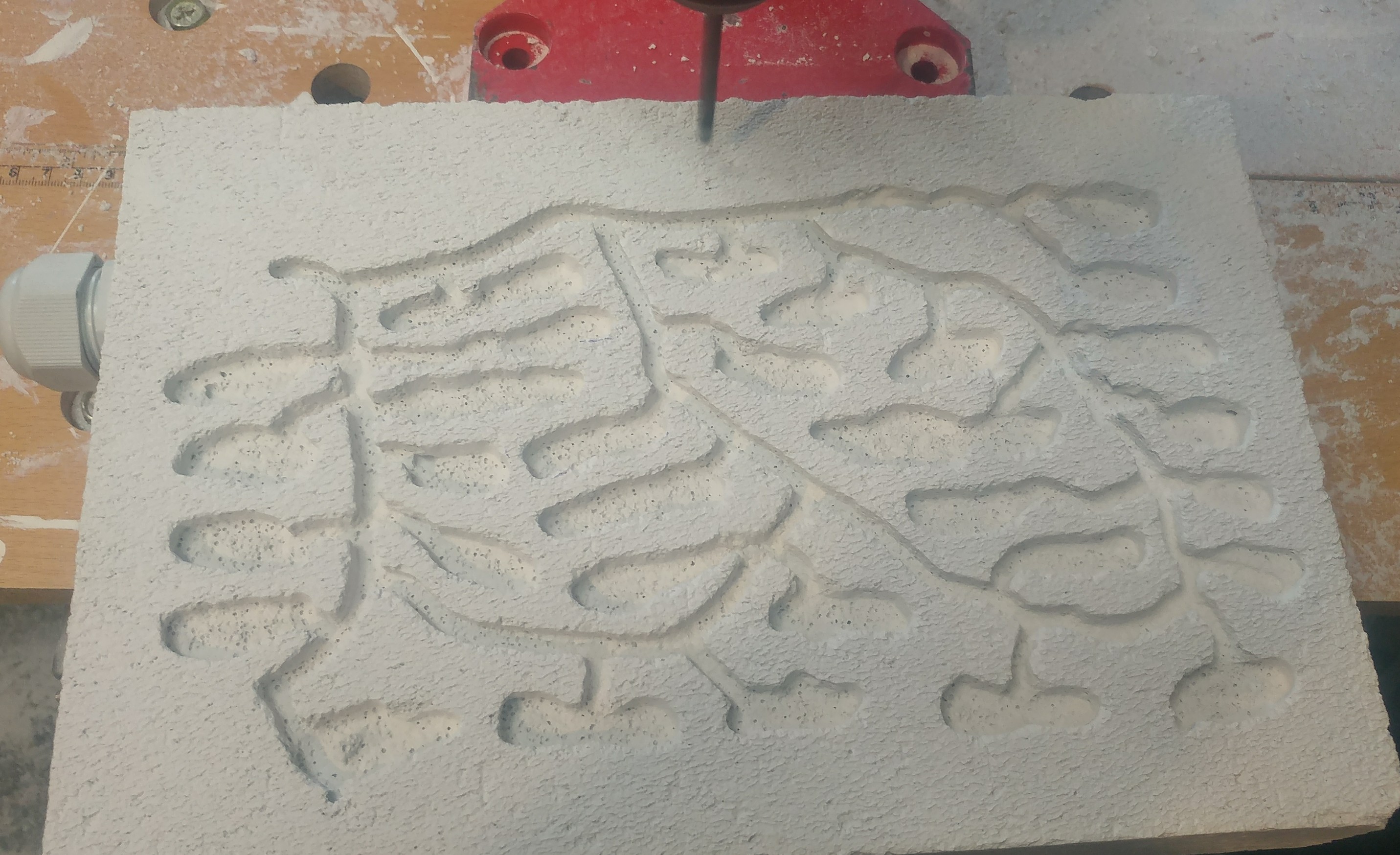 Nach dem FrĂ€sen wurde der Stein gut gewaschen und anschlieĂend mit Gips bestrichen.